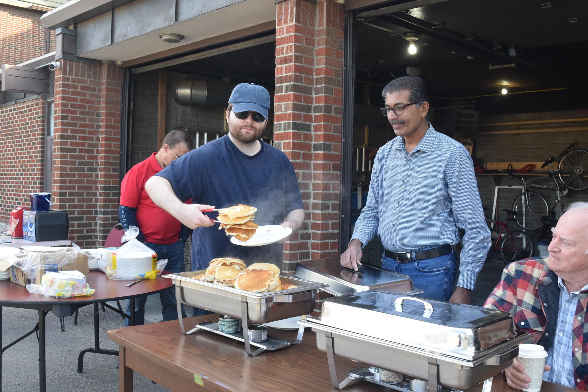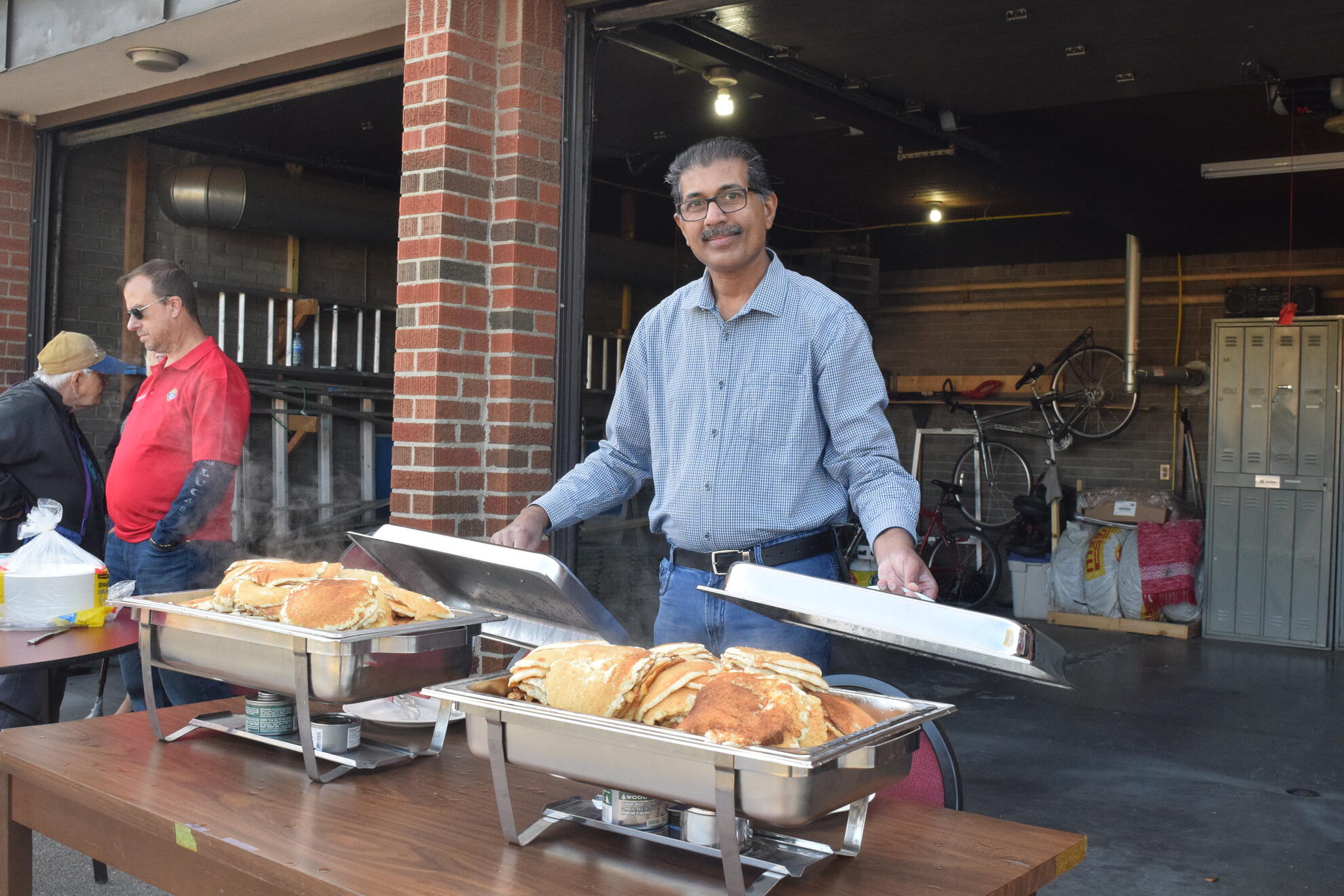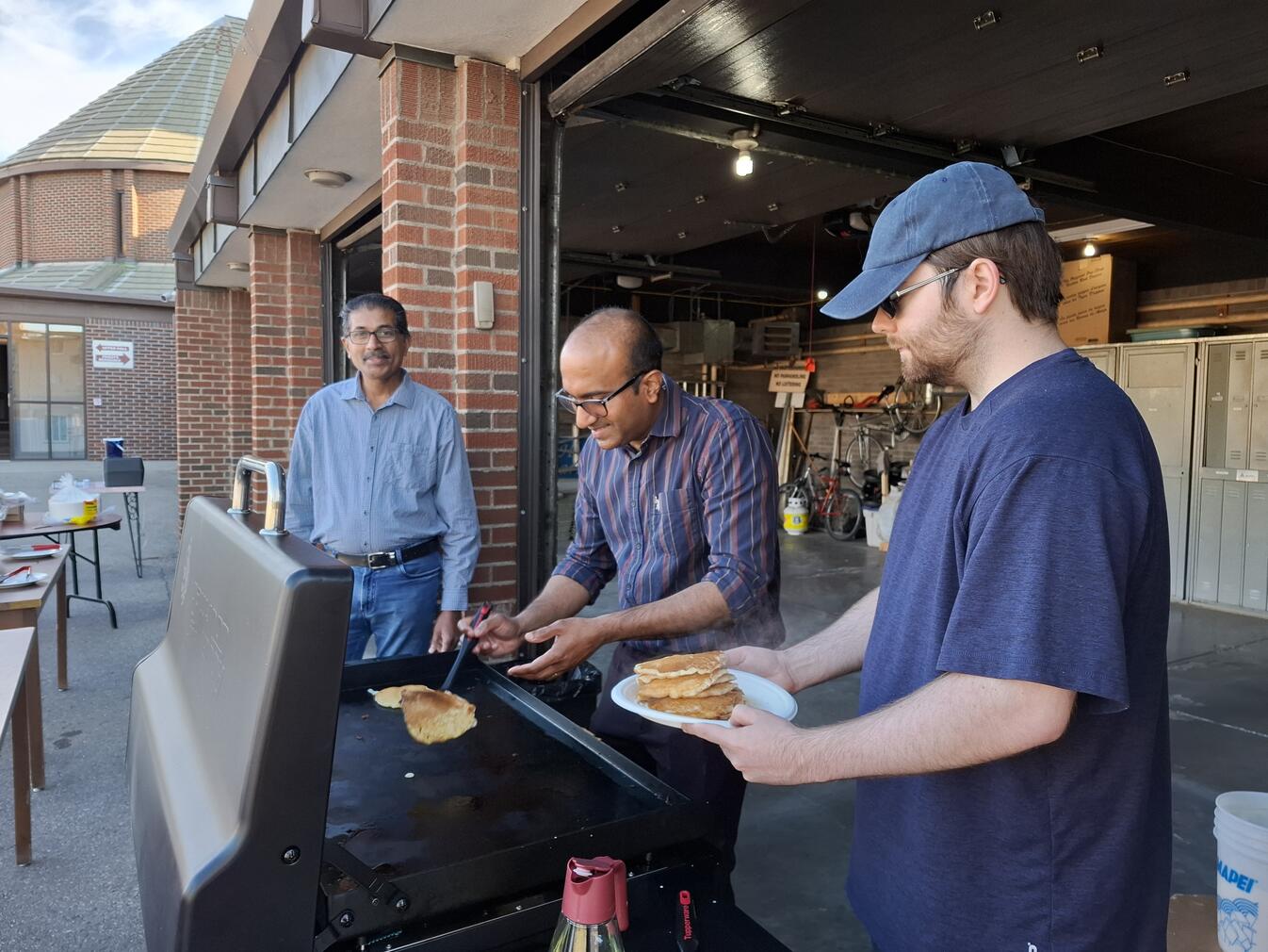 At the griddle, Br. Sijo Abraham and SK Sasha Chitrenky kept plates full and lines moving. Br. Shibu Antony prepared the batter steadily through the morning and kept them supplied so the cooking never slowed. He also stepped in to serve and help with cleanup as needed. In the spirit of Faith in Action, Br. Phonse Delaney proved tireless, assisting with setup and teardown, guiding donations and public relations, and inviting parishioners after both Masses to come share a meal. SK Wayne Gerylo served pancakes, while SK Roy Ifill, Br. James John, Br. John Leahy, and Br. Cryztof Lopianowski worked shoulder to shoulder on setup, table preparation, and a thorough cleanup.