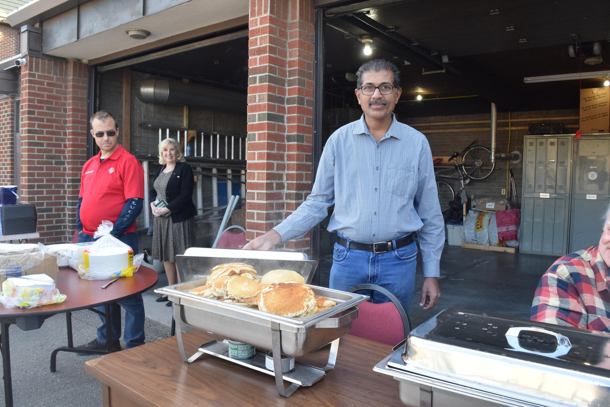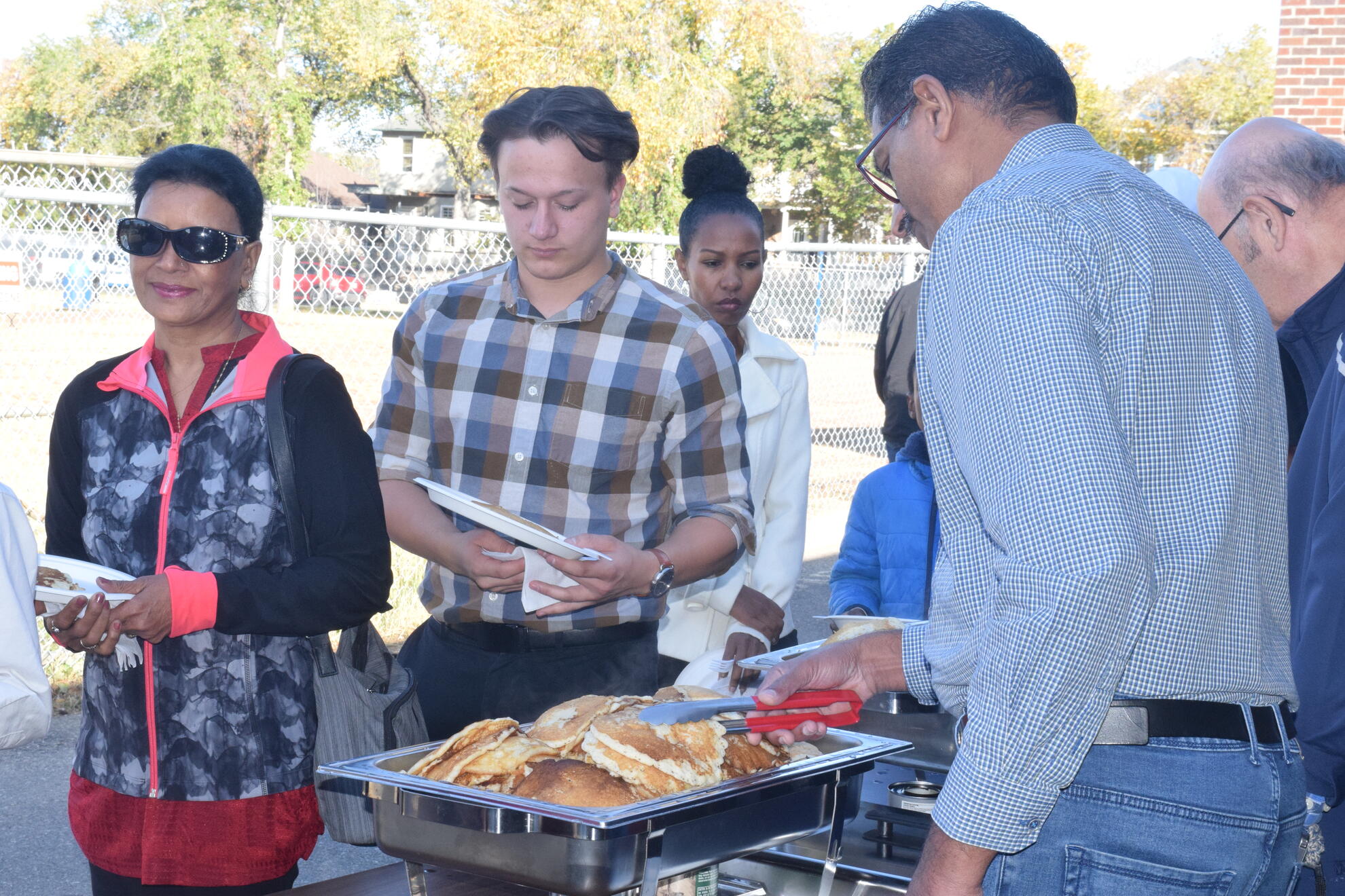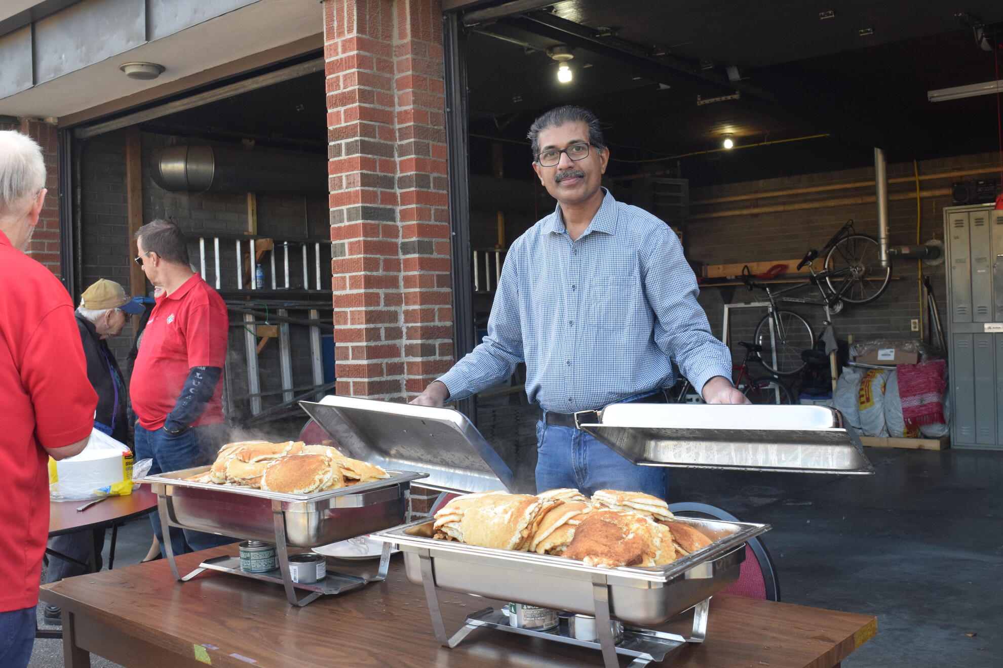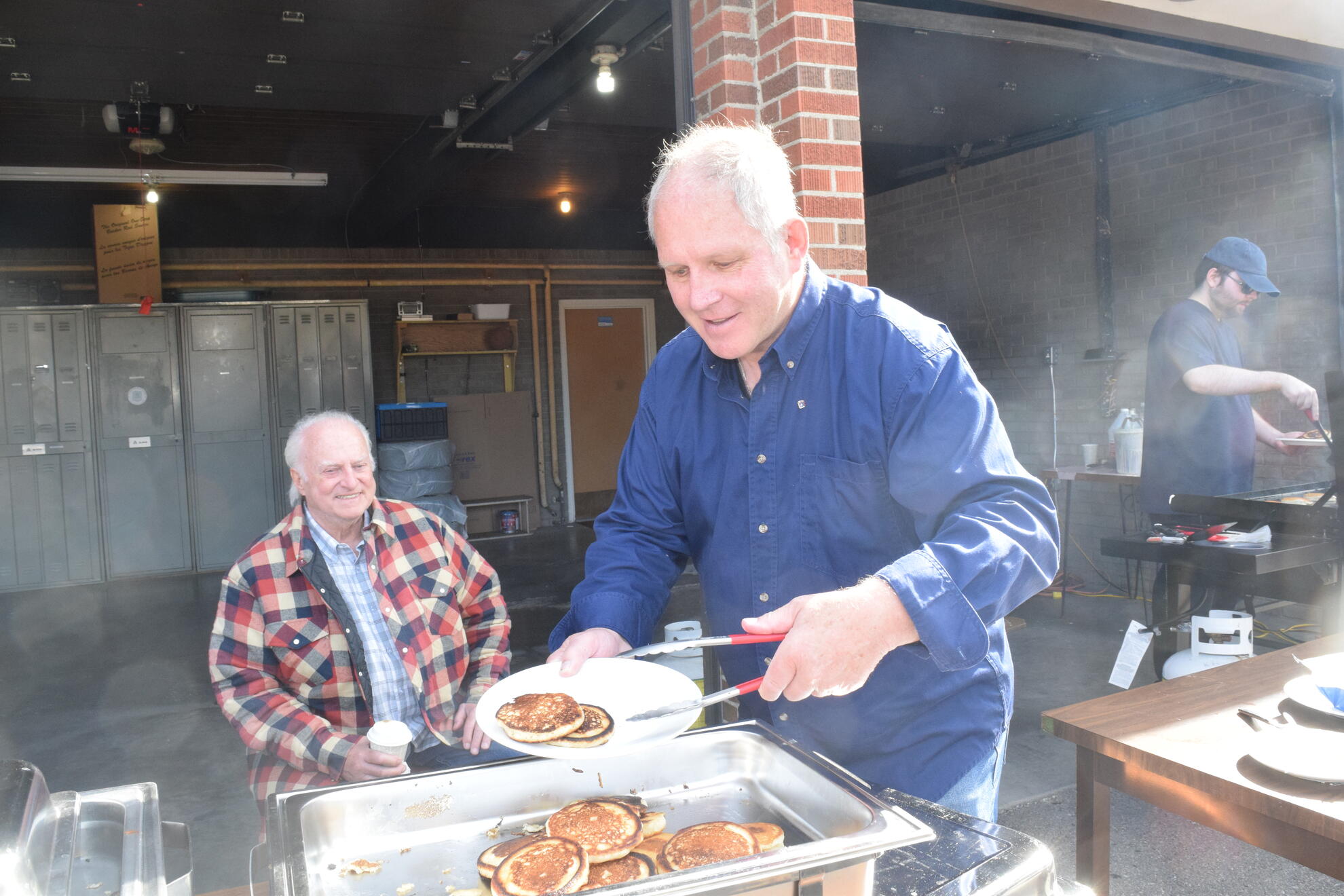 At the griddle, Br. Sijo Abraham and SK Sasha Chitrenky kept plates full and lines moving. Br. Shibu Antony prepared the batter steadily through the morning and kept them supplied so the cooking never slowed. He also stepped in to serve and help with cleanup as needed. In the spirit of Faith in Action, Br. Phonse Delaney proved tireless, assisting with setup and teardown, guiding donations and public relations, and inviting parishioners after both Masses to come share a meal. SK Wayne Gerylo served pancakes, while SK Roy Ifill, Br. James John, Br. John Leahy, and Br. Cryztof Lopianowski worked shoulder to shoulder on setup, table preparation, and a thorough cleanup.