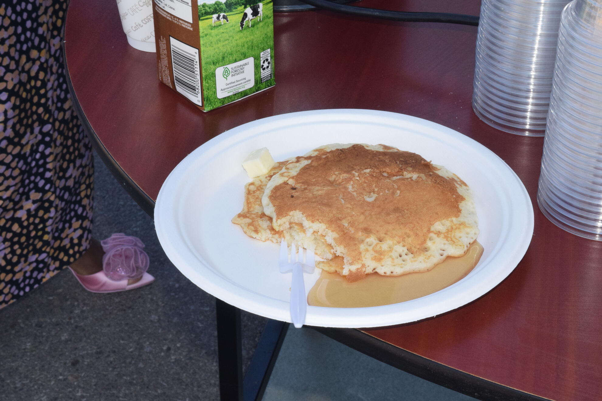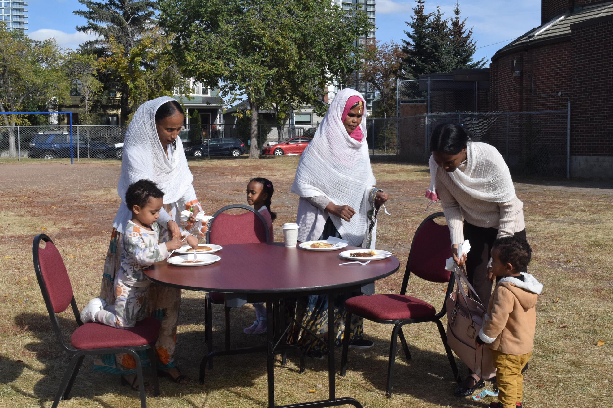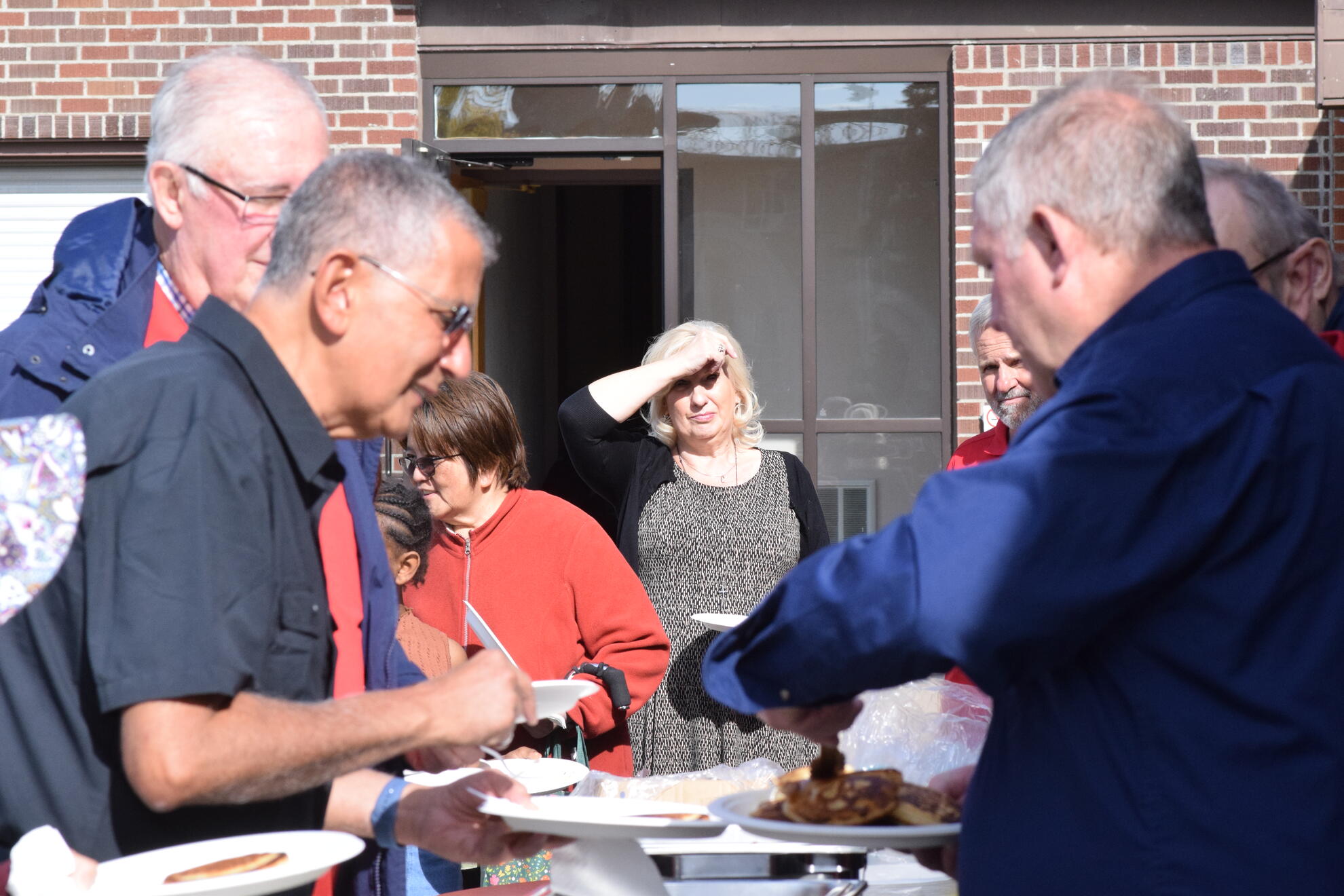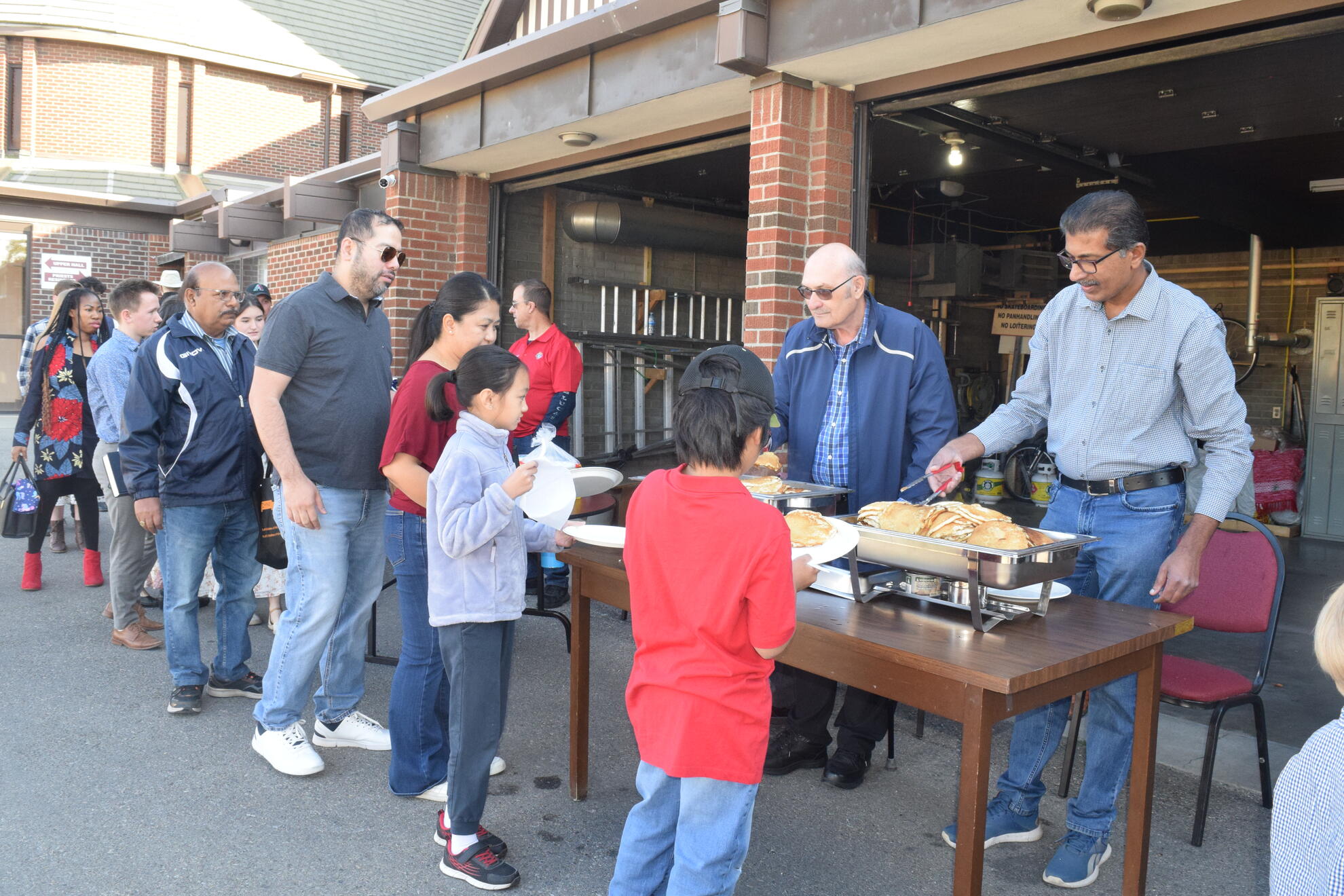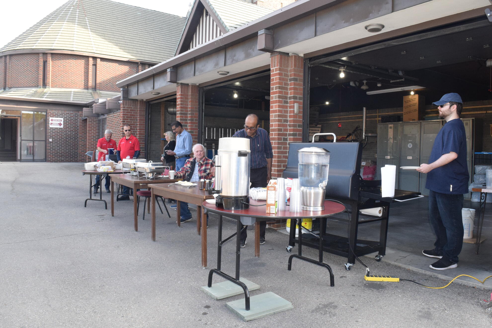 On Sunday, September 28, 2025, our Council hosted a Pancake Breakfast following the 9:00 a.m. and 11:00 a.m. Masses. We welcomed an estimated 250 to 300 parishioners and guests. The morning began cool and mostly cloudy, then brightened toward midday. Temperatures rose from about 6°C after 7 a.m. to the mid-teens by early afternoon, with a steady south breeze. We prepared and served outdoors, and parishioners gathered both in the Upper Hall and on the Sacred Heart Elementary School playground. After the 9 a.m. Mass most lingered inside where it was warmer, while after the 11 a.m. Mass the sunshine drew most people outside to eat in the fresh air.