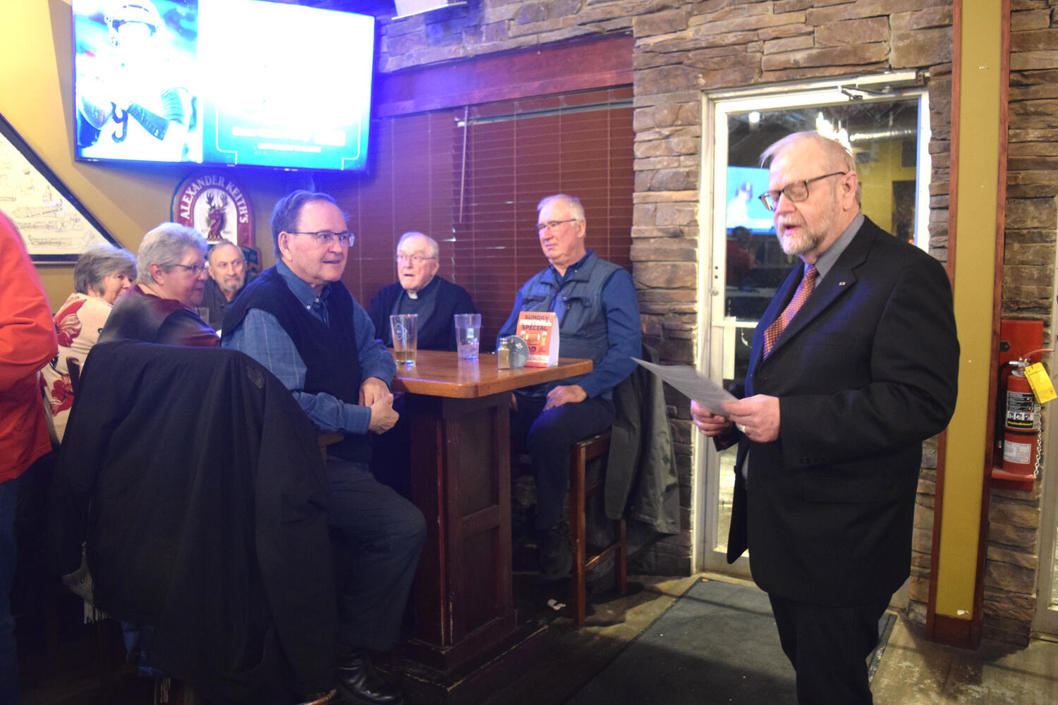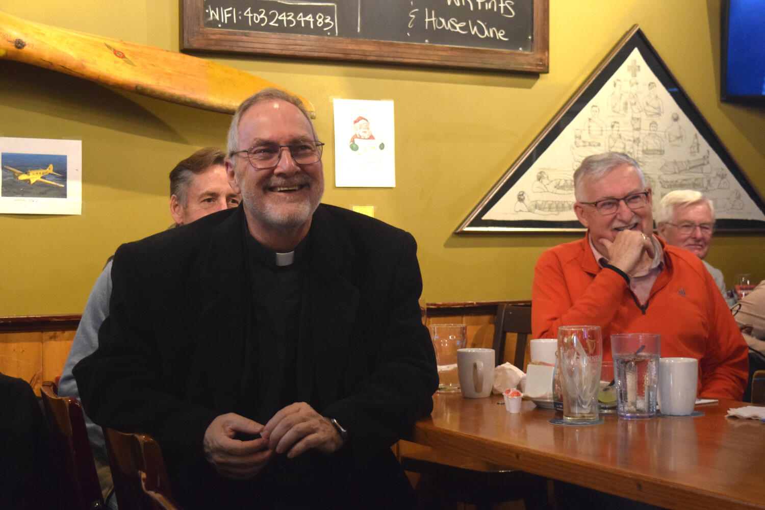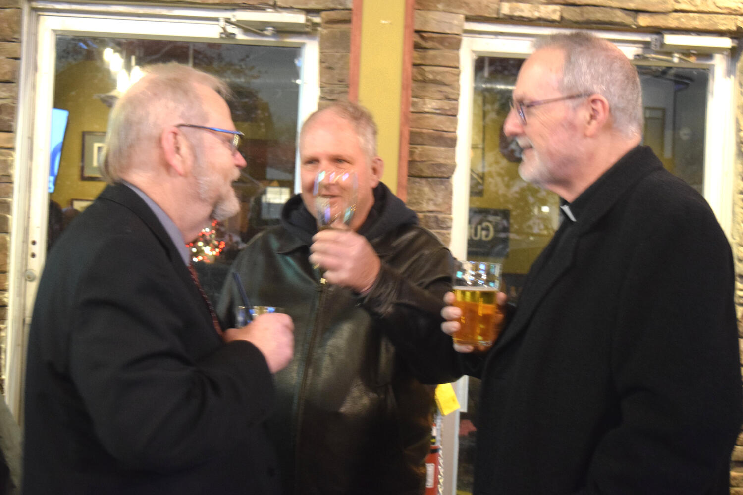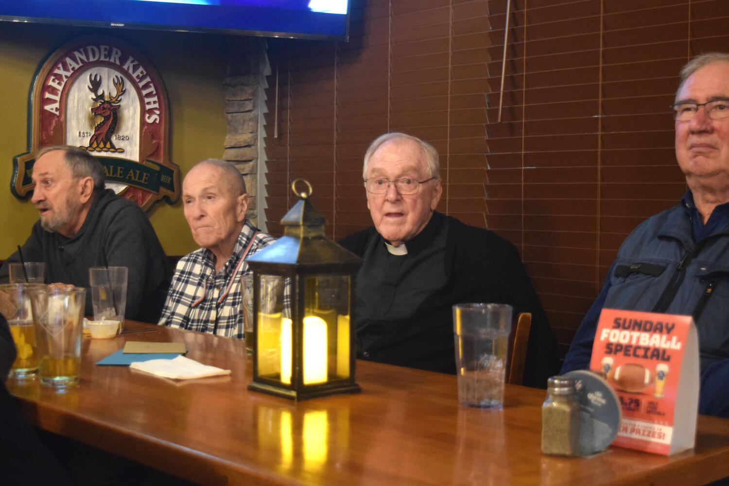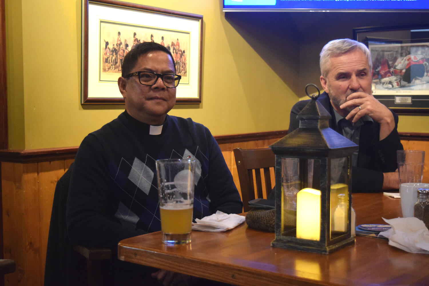 At the Garrison Pub and Eatery, members of Monsignor Doyle Council 1186 gathered to offer prepared tributes and words of thanks to Father Eric and Father Arjay, and to recognize the ninety years of priestly service that their vocations represent.