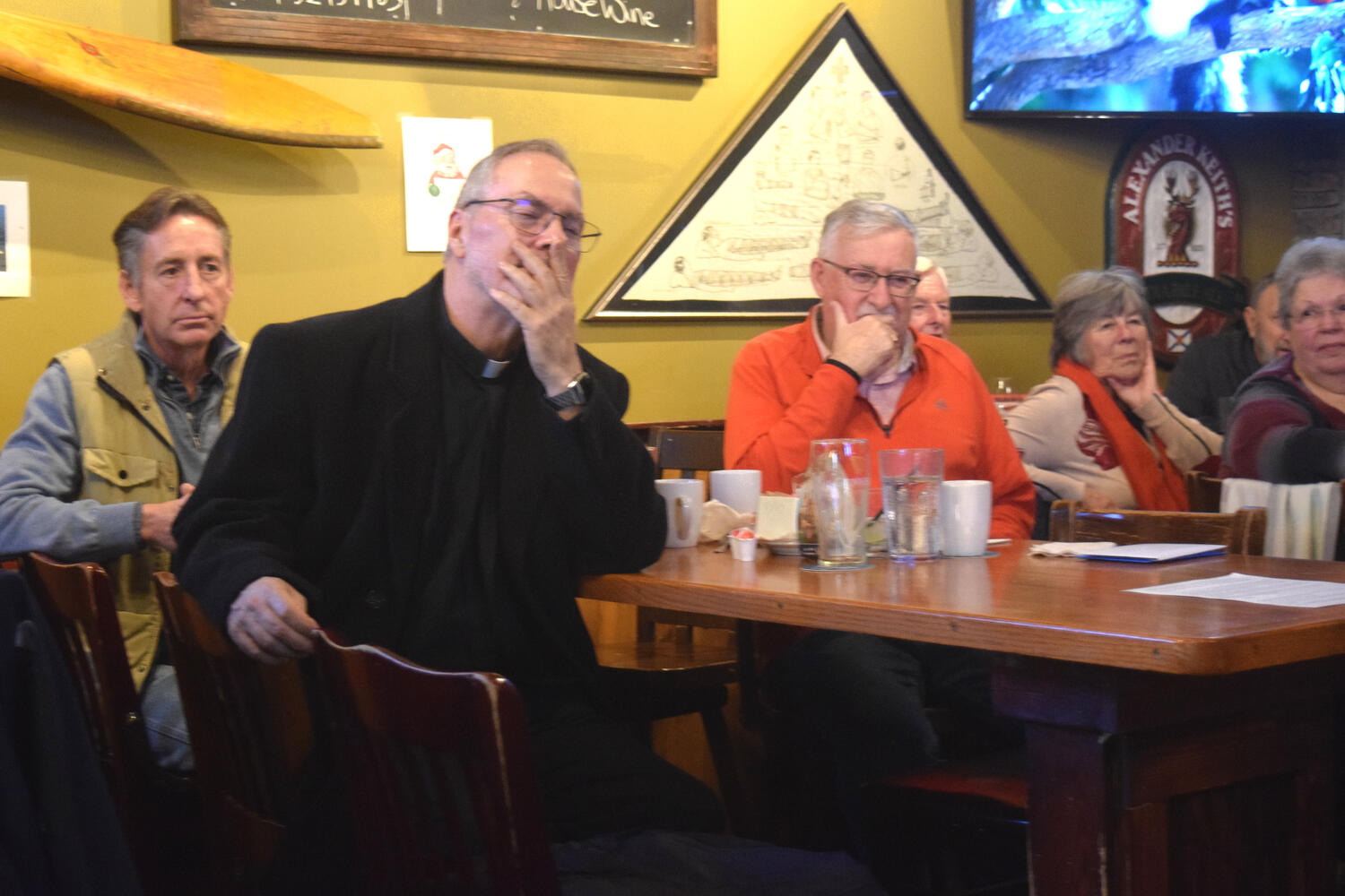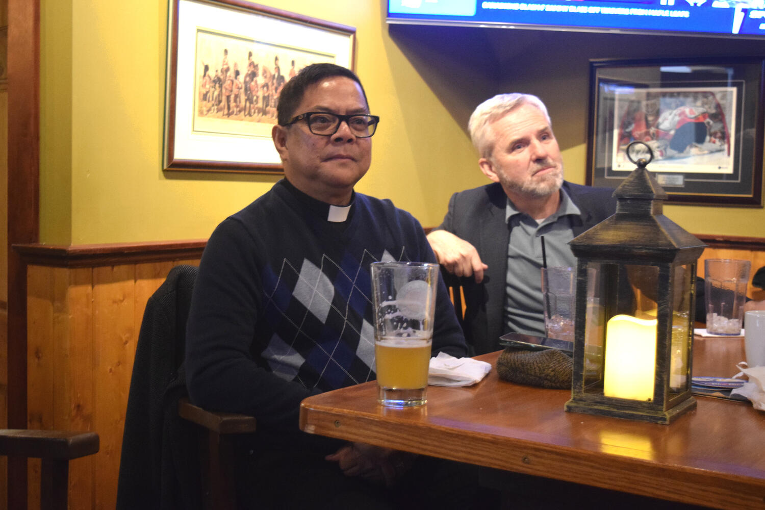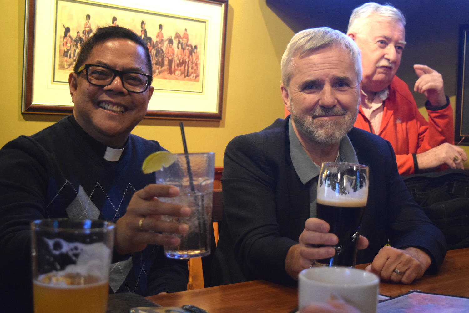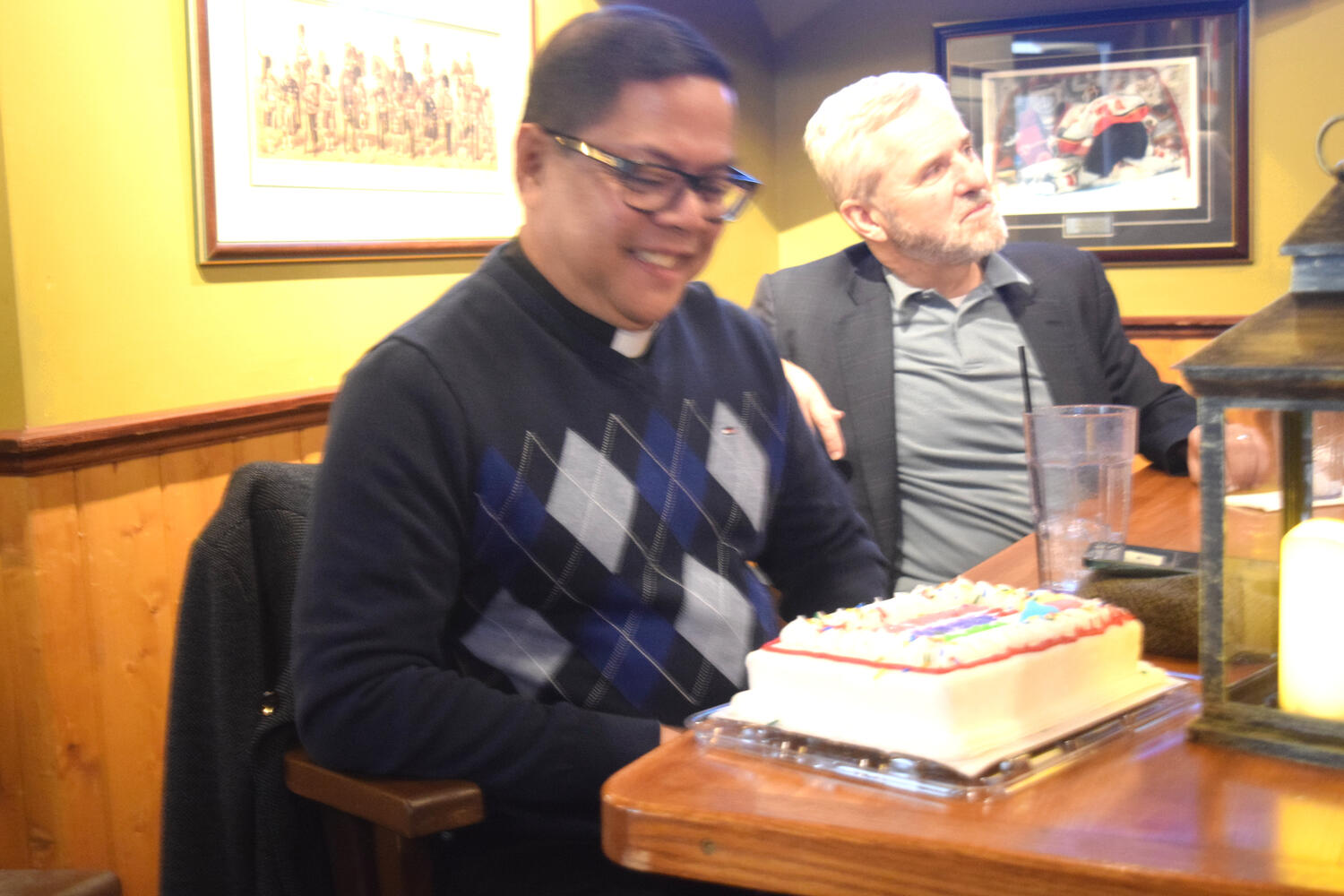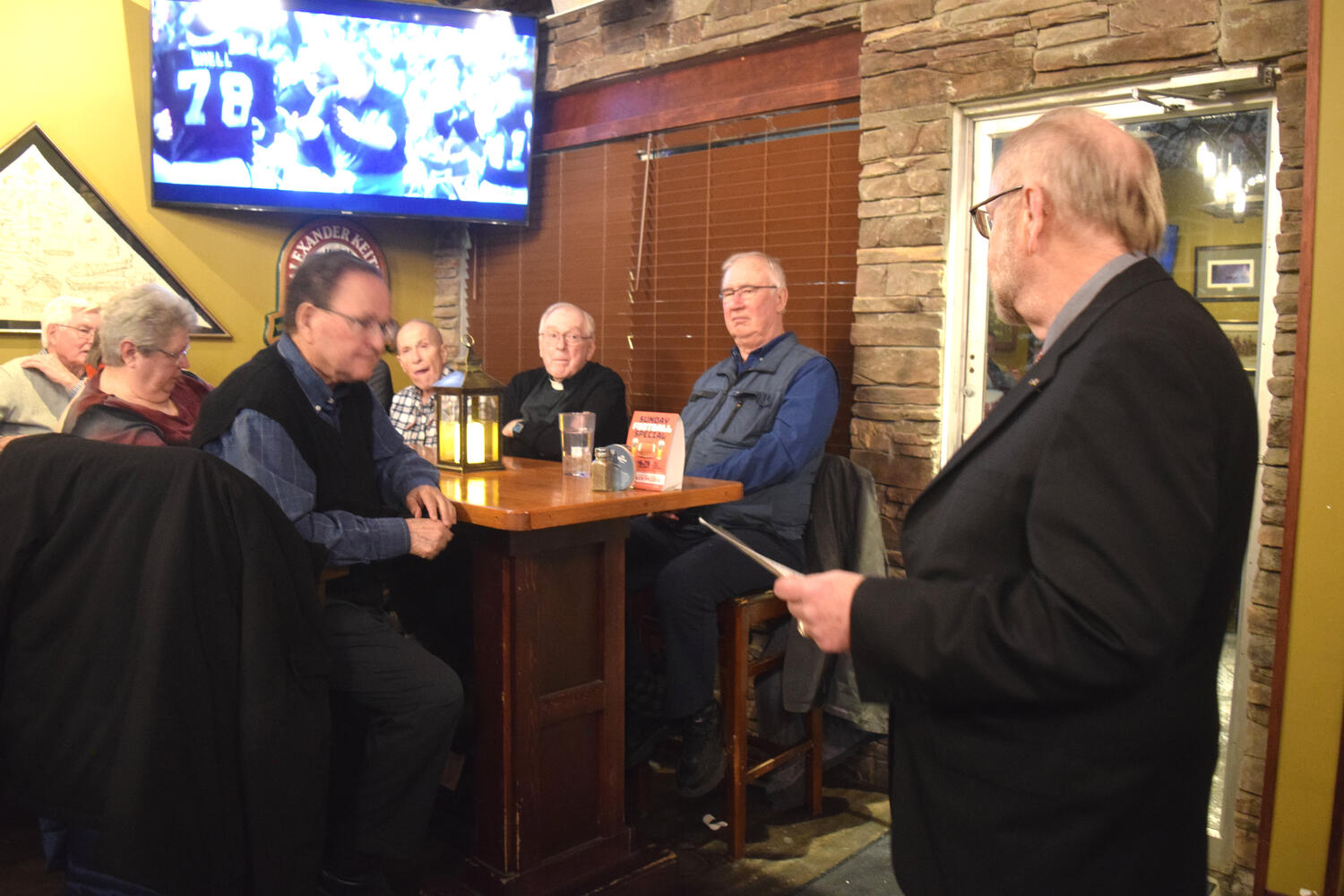 At the Garrison Pub and Eatery, members of Monsignor Doyle Council 1186 gathered to offer prepared tributes and words of thanks to Father Eric and Father Arjay, and to recognize the ninety years of priestly service that their vocations represent.
