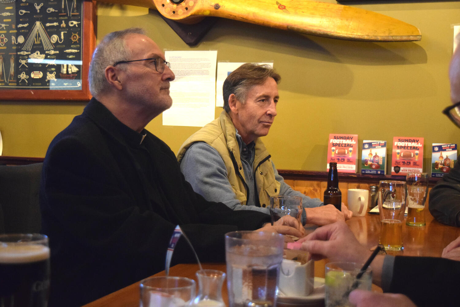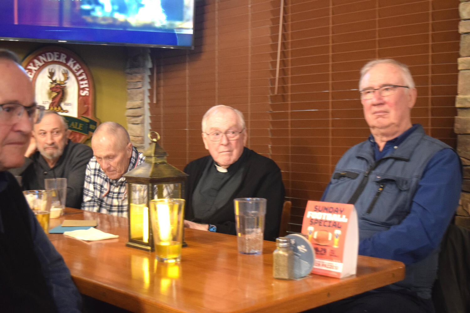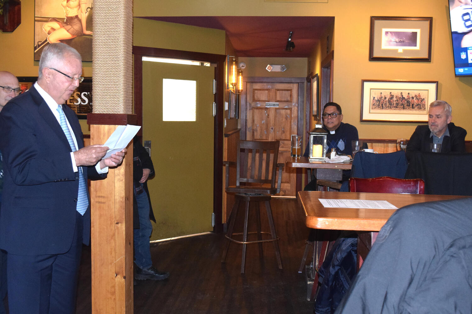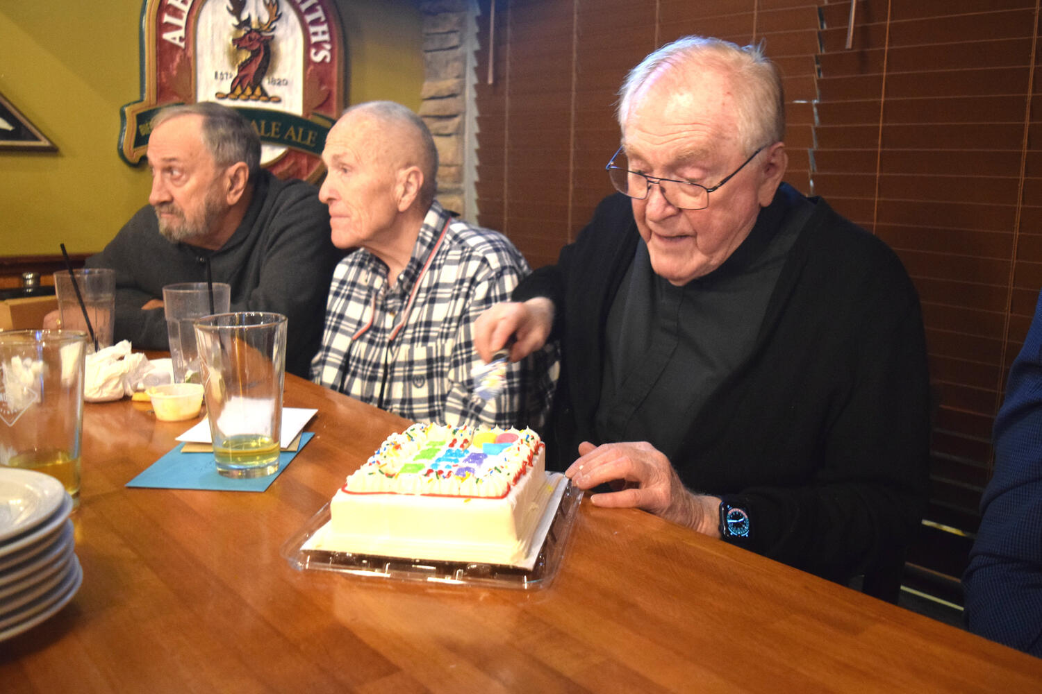 At the Garrison Pub and Eatery, members of Monsignor Doyle Council 1186 gathered to offer prepared tributes and words of thanks to Father Eric and Father Arjay, and to recognize the ninety years of priestly service that their vocations represent.