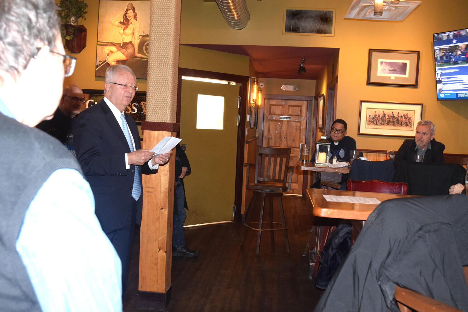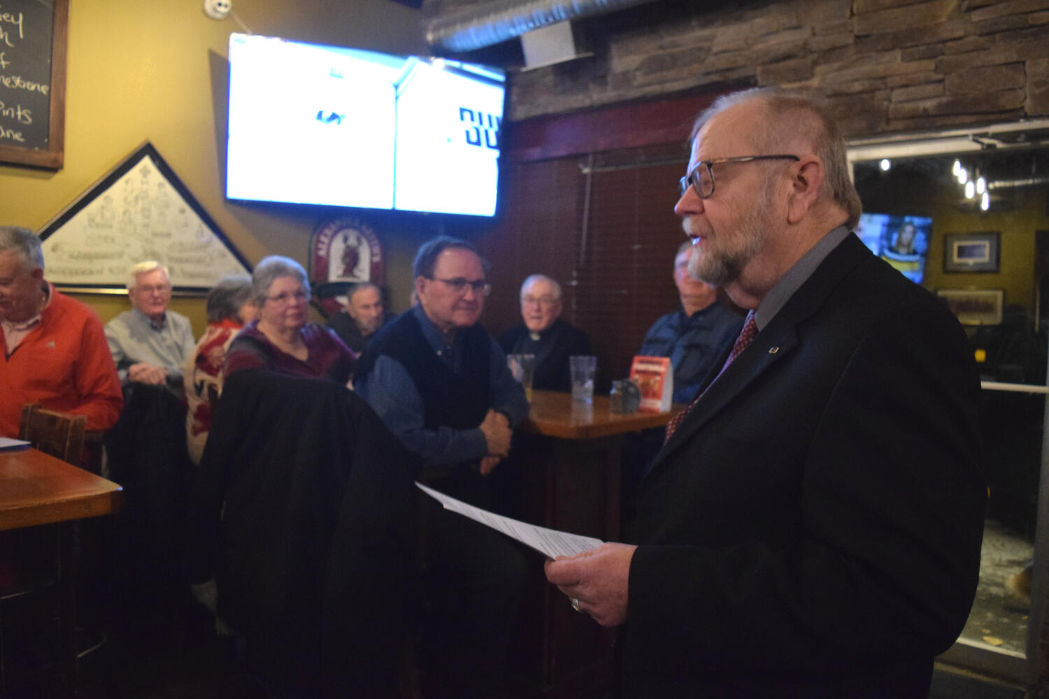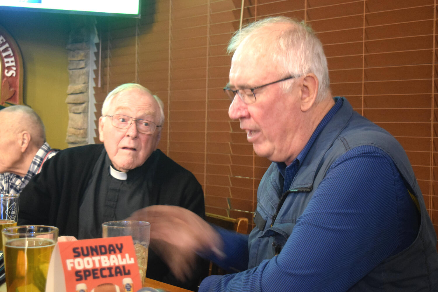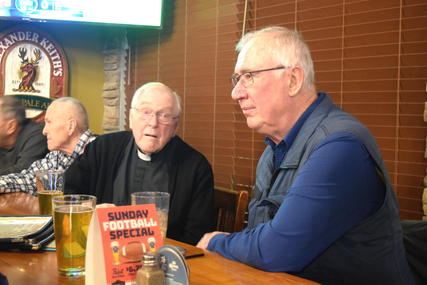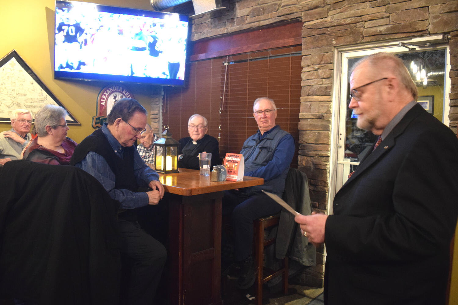 At the Garrison Pub and Eatery, members of Monsignor Doyle Council 1186 gathered to offer prepared tributes and words of thanks to Father Eric and Father Arjay, and to recognize the ninety years of priestly service that their vocations represent.