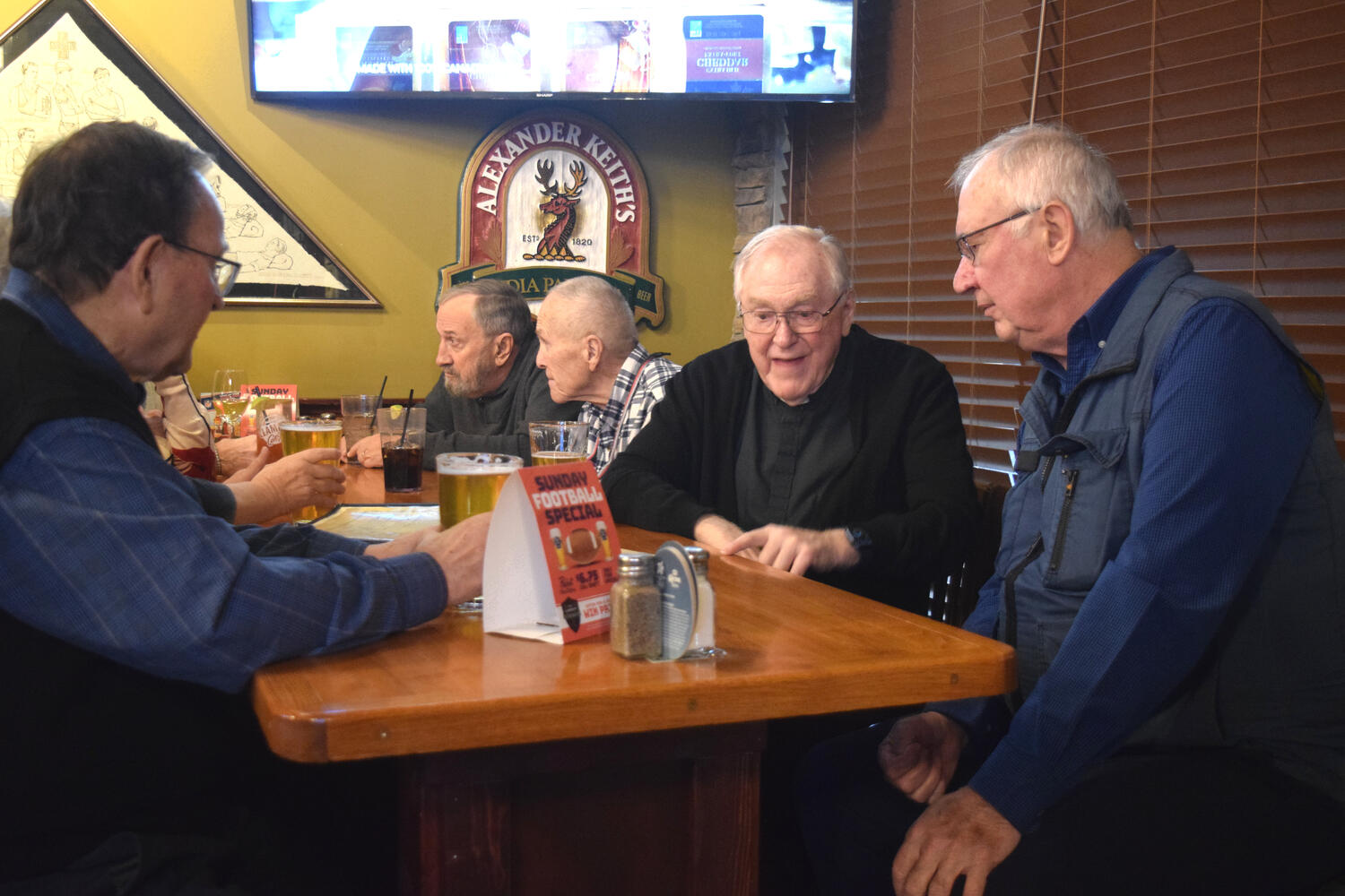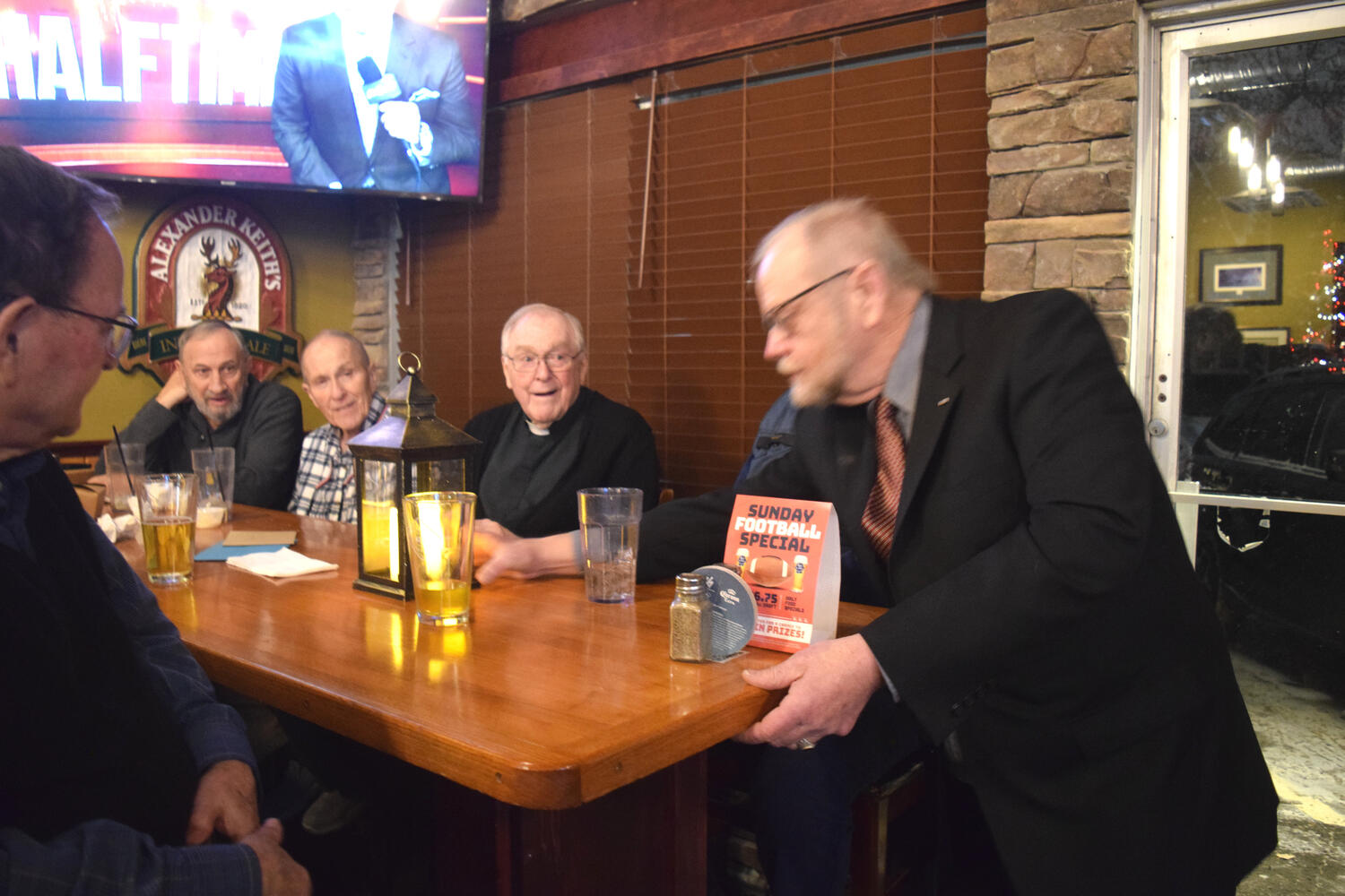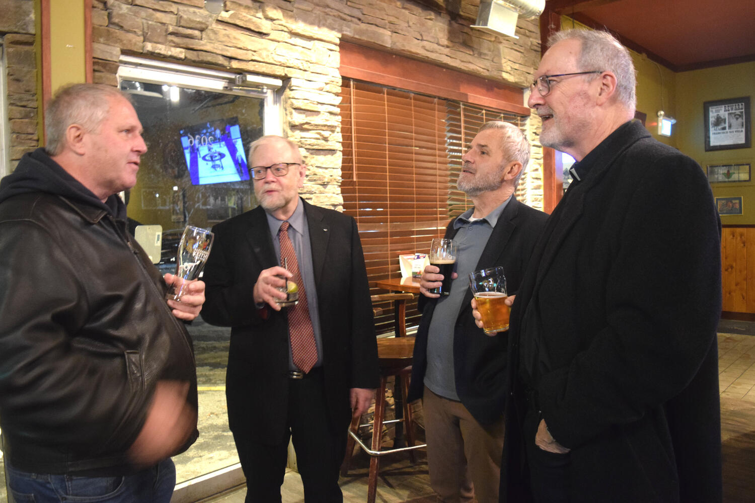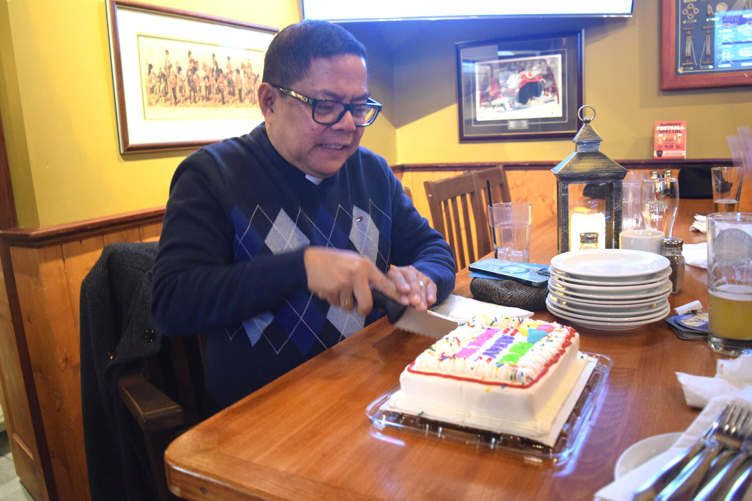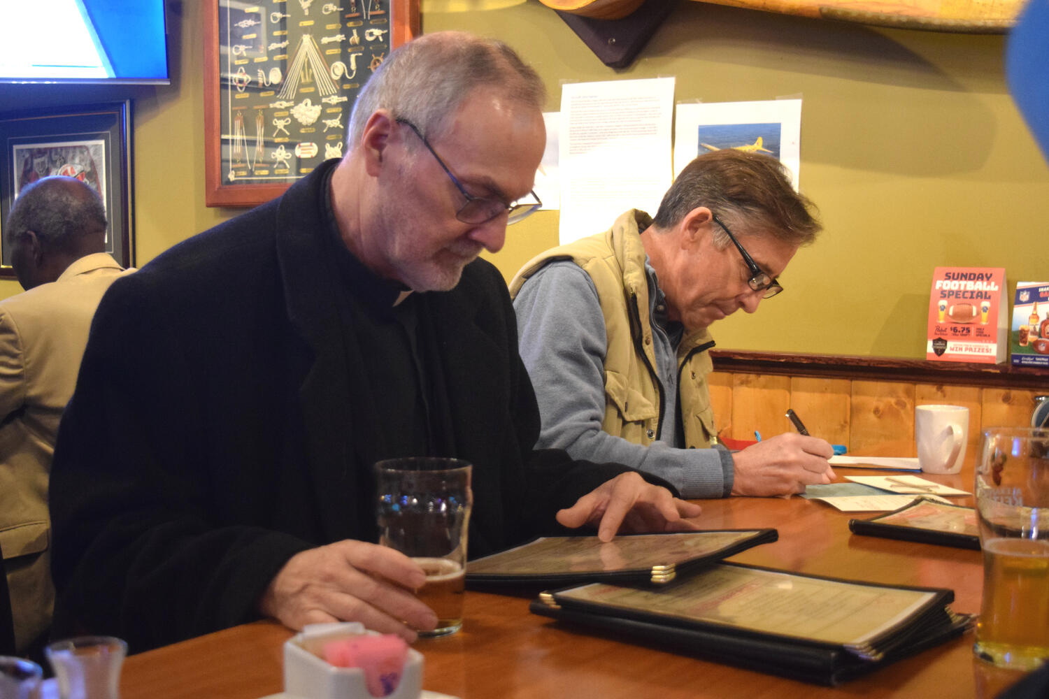 At the Garrison Pub and Eatery, members of Monsignor Doyle Council 1186 gathered to offer prepared tributes and words of thanks to Father Eric and Father Arjay, and to recognize the ninety years of priestly service that their vocations represent.