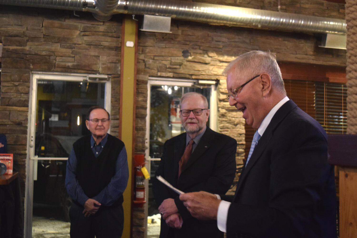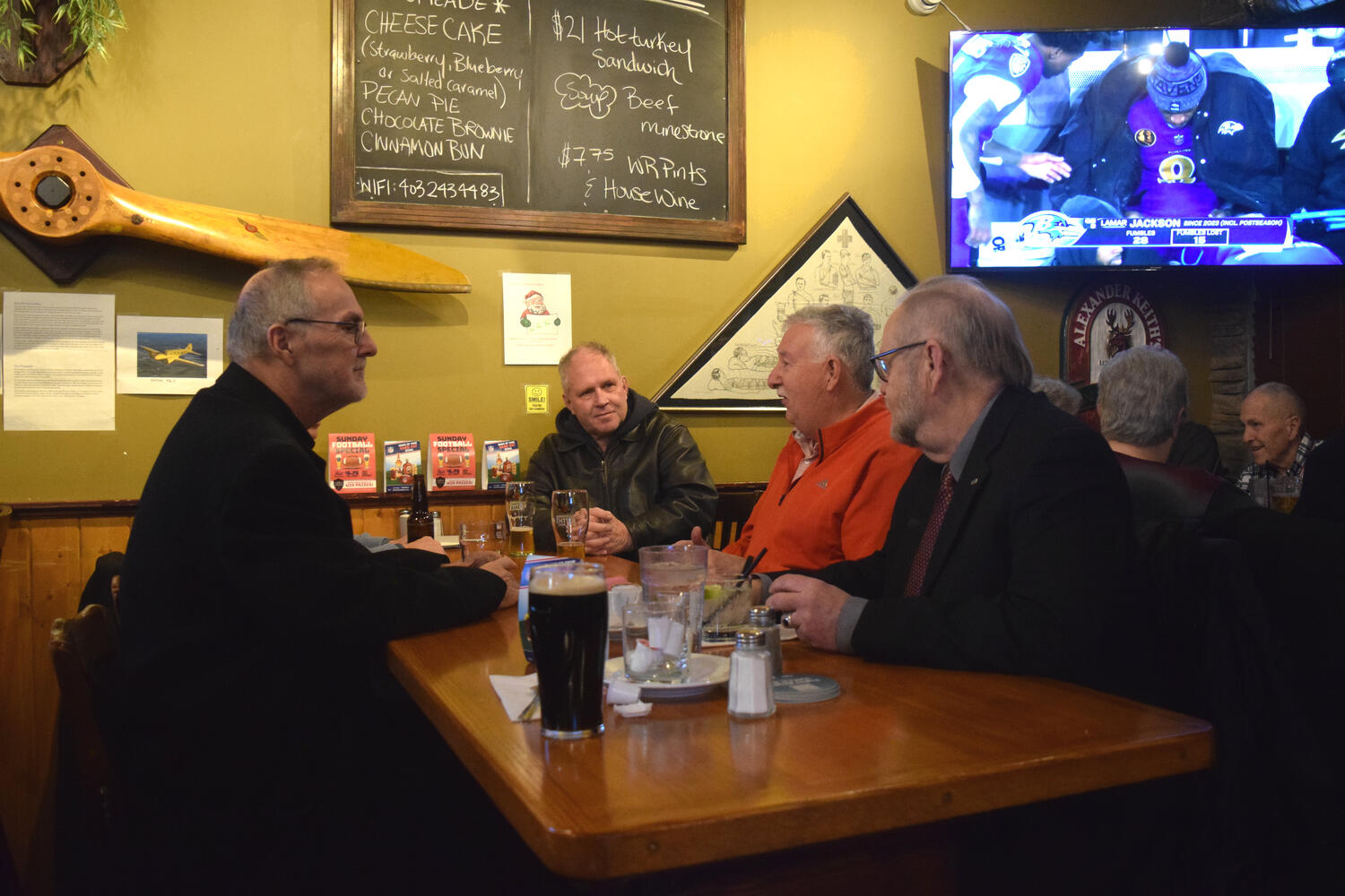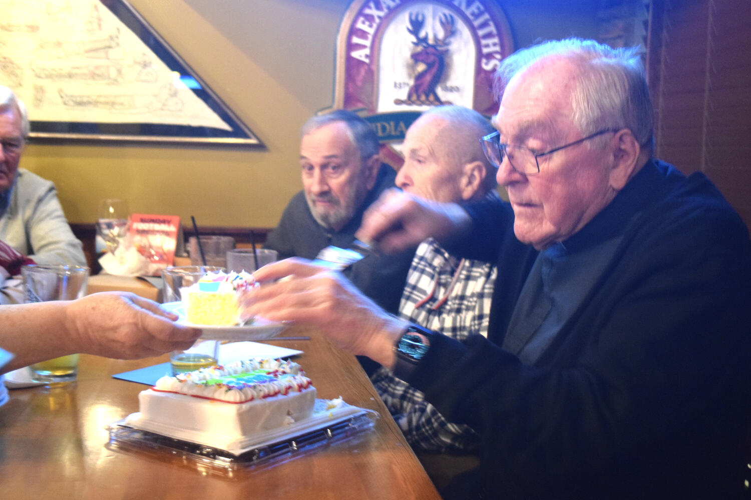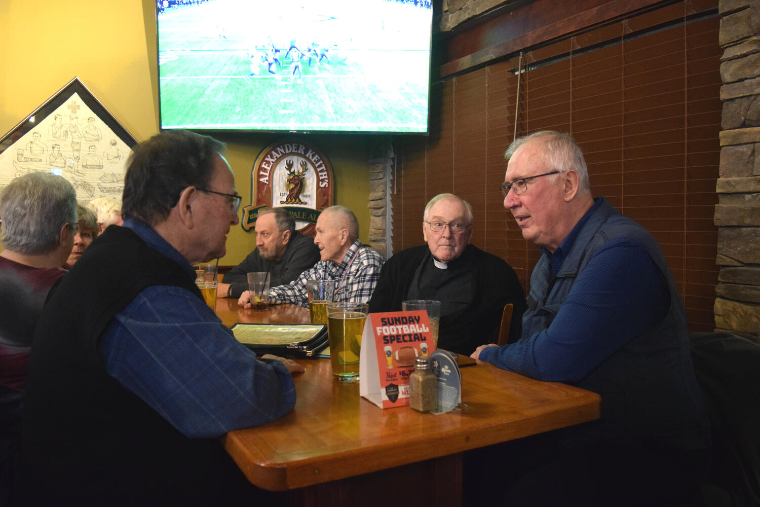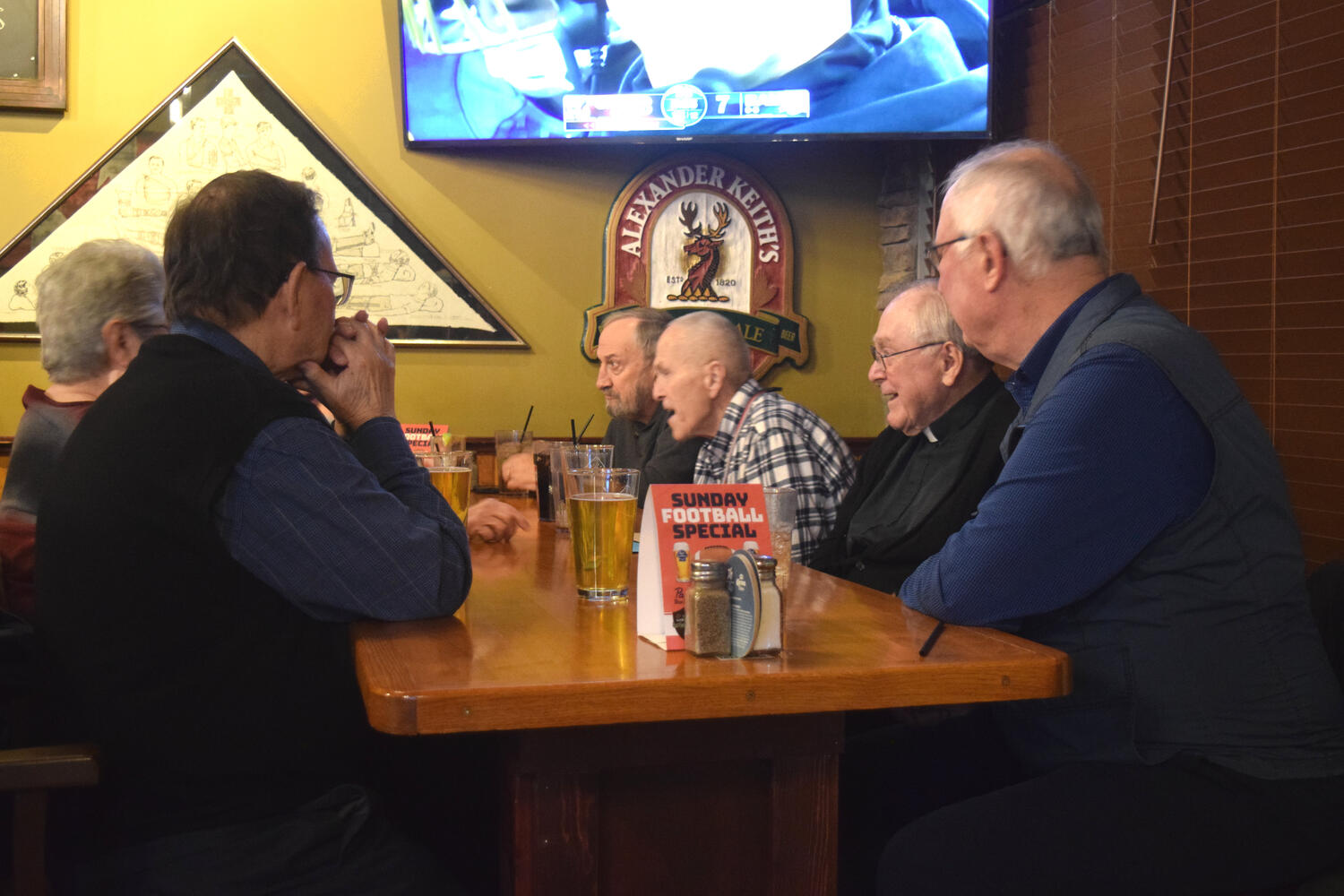 At the Garrison Pub and Eatery, members of Monsignor Doyle Council 1186 gathered to offer prepared tributes and words of thanks to Father Eric and Father Arjay, and to recognize the ninety years of priestly service that their vocations represent.