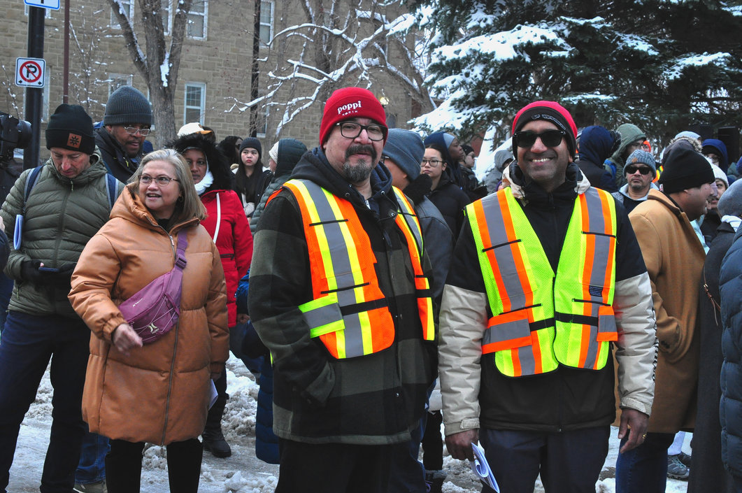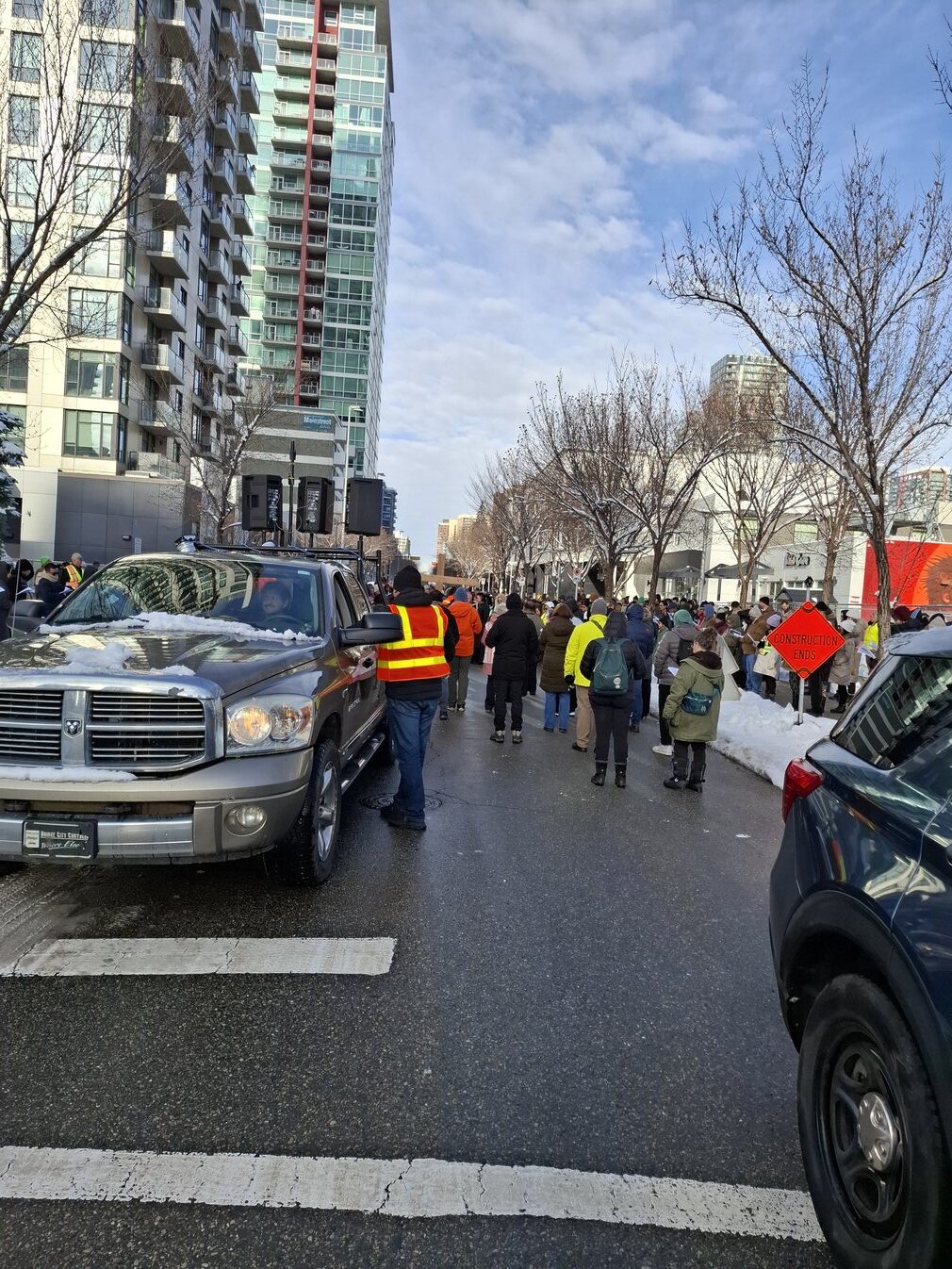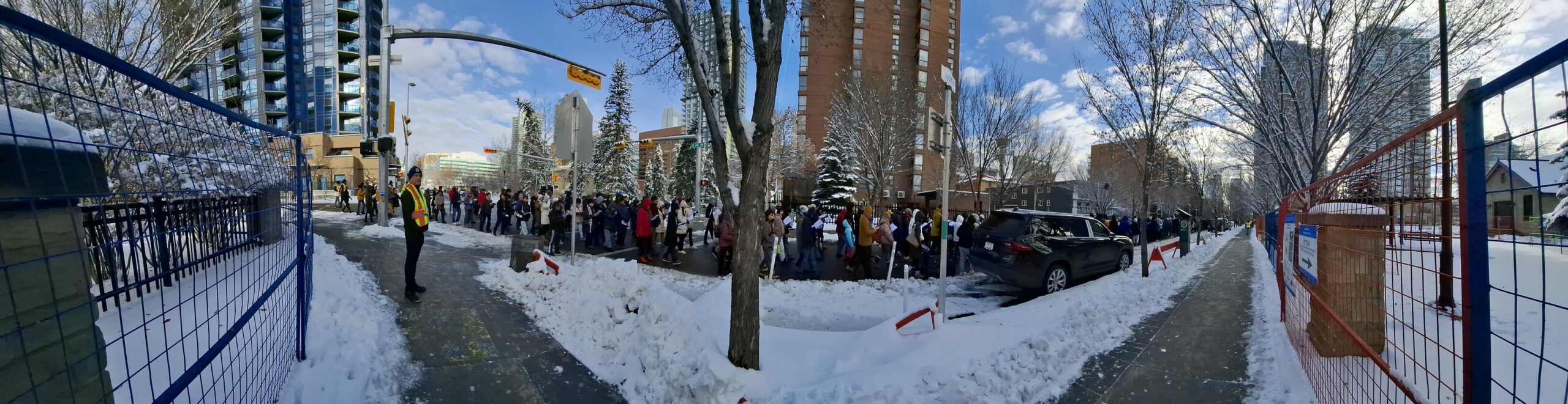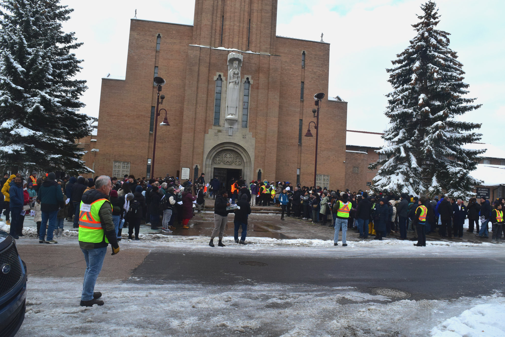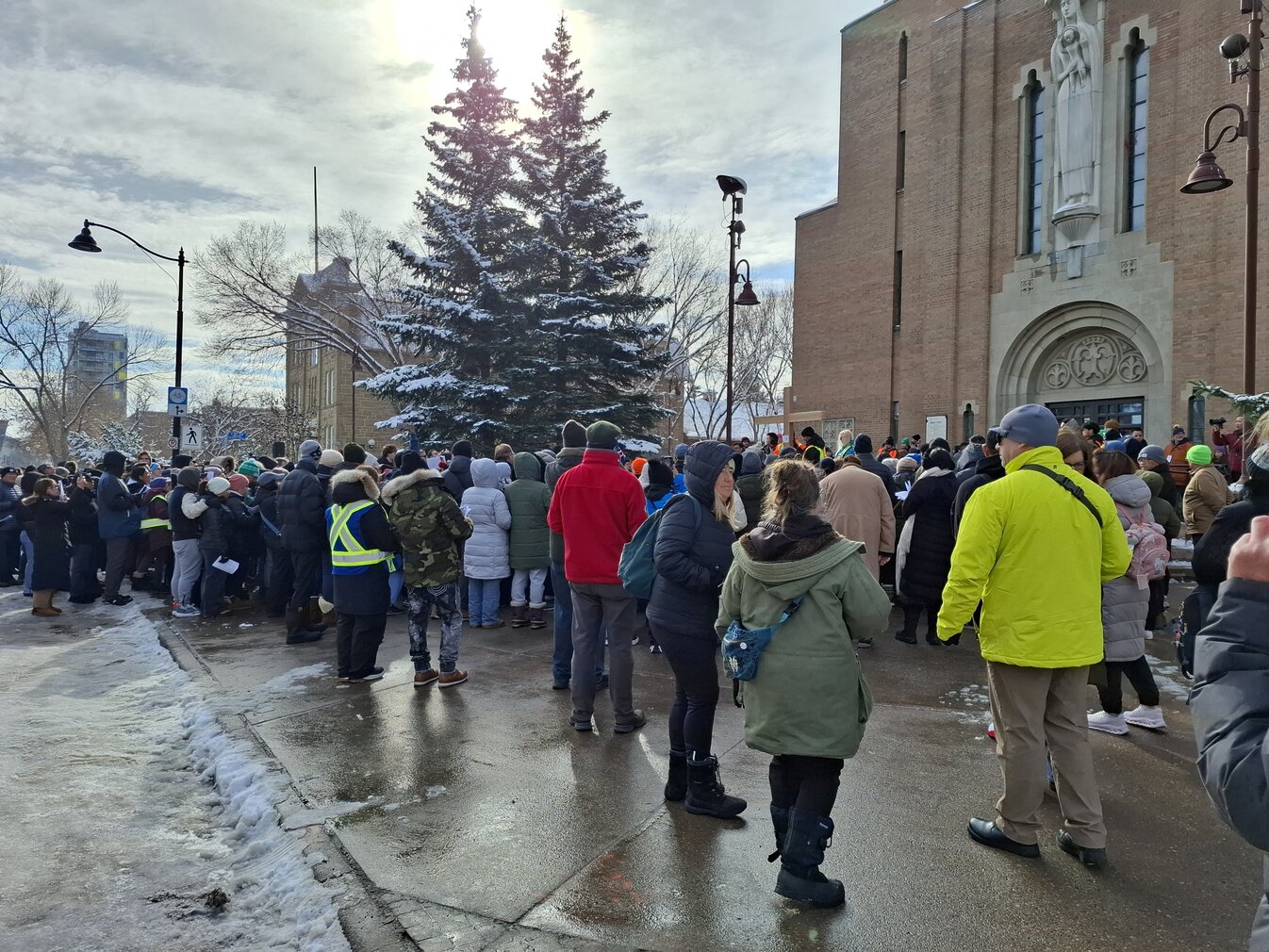 Good Friday morning, April 3rd in downtown Calgary began under cold skies and near-freezing temperatures, but the Outdoor Way of the Cross once again drew a very strong turnout. Attendance was comparable to 2025, with an estimated 2,000 to 3,000 people taking part. Before the procession began, Fr. Arjay led the volunteers in prayer.