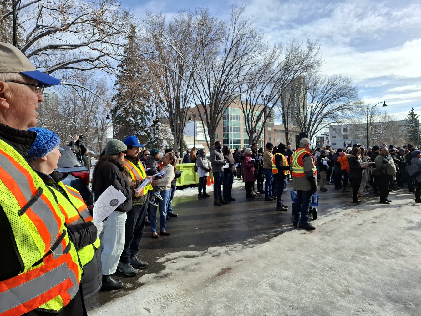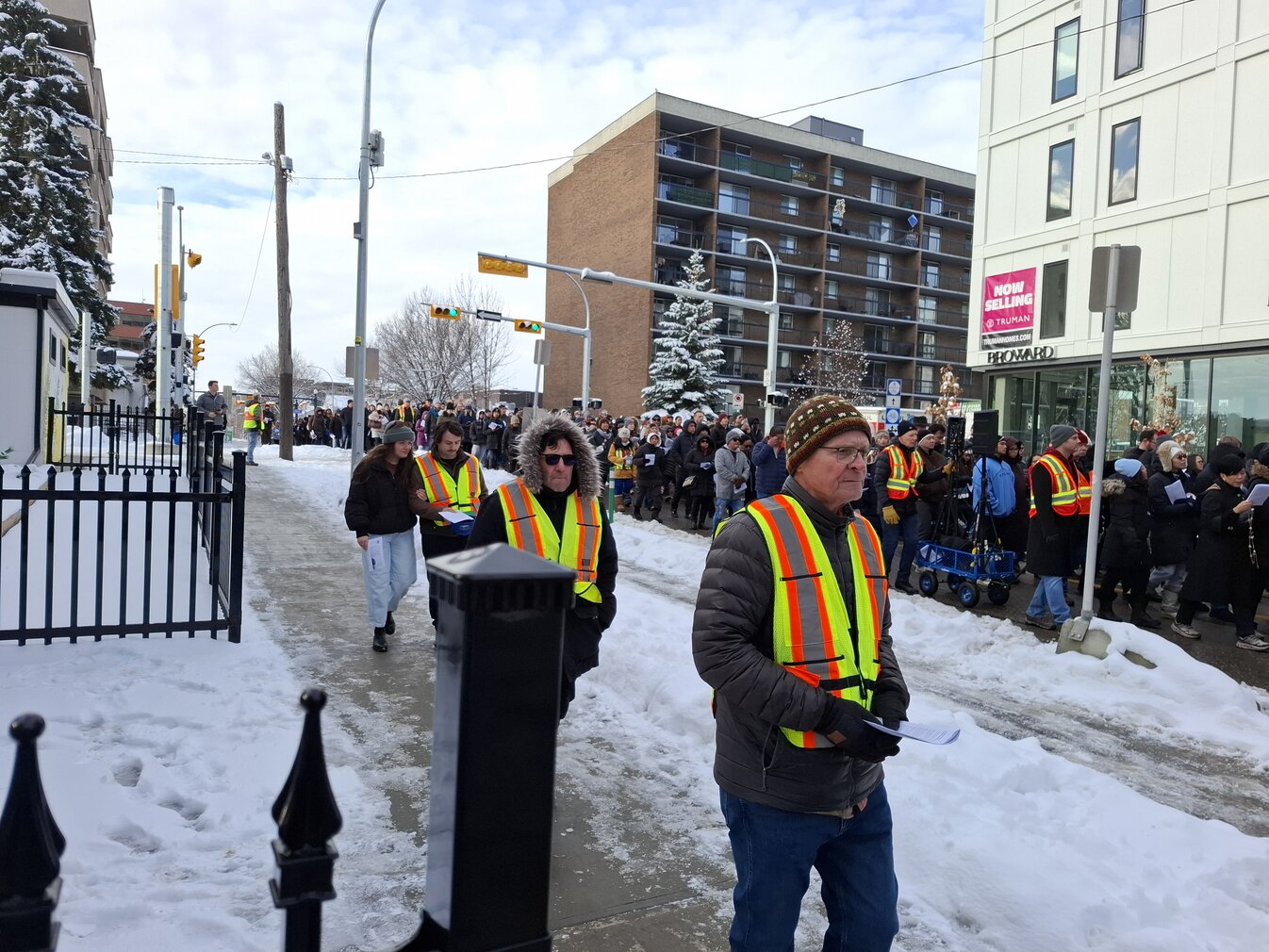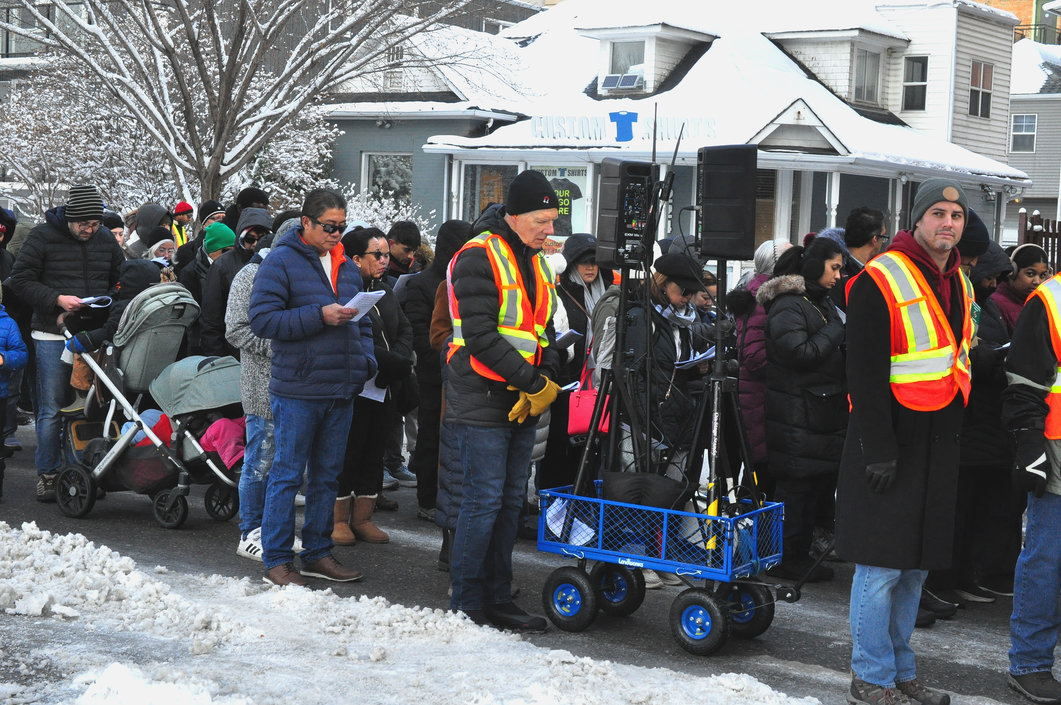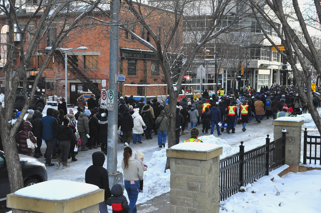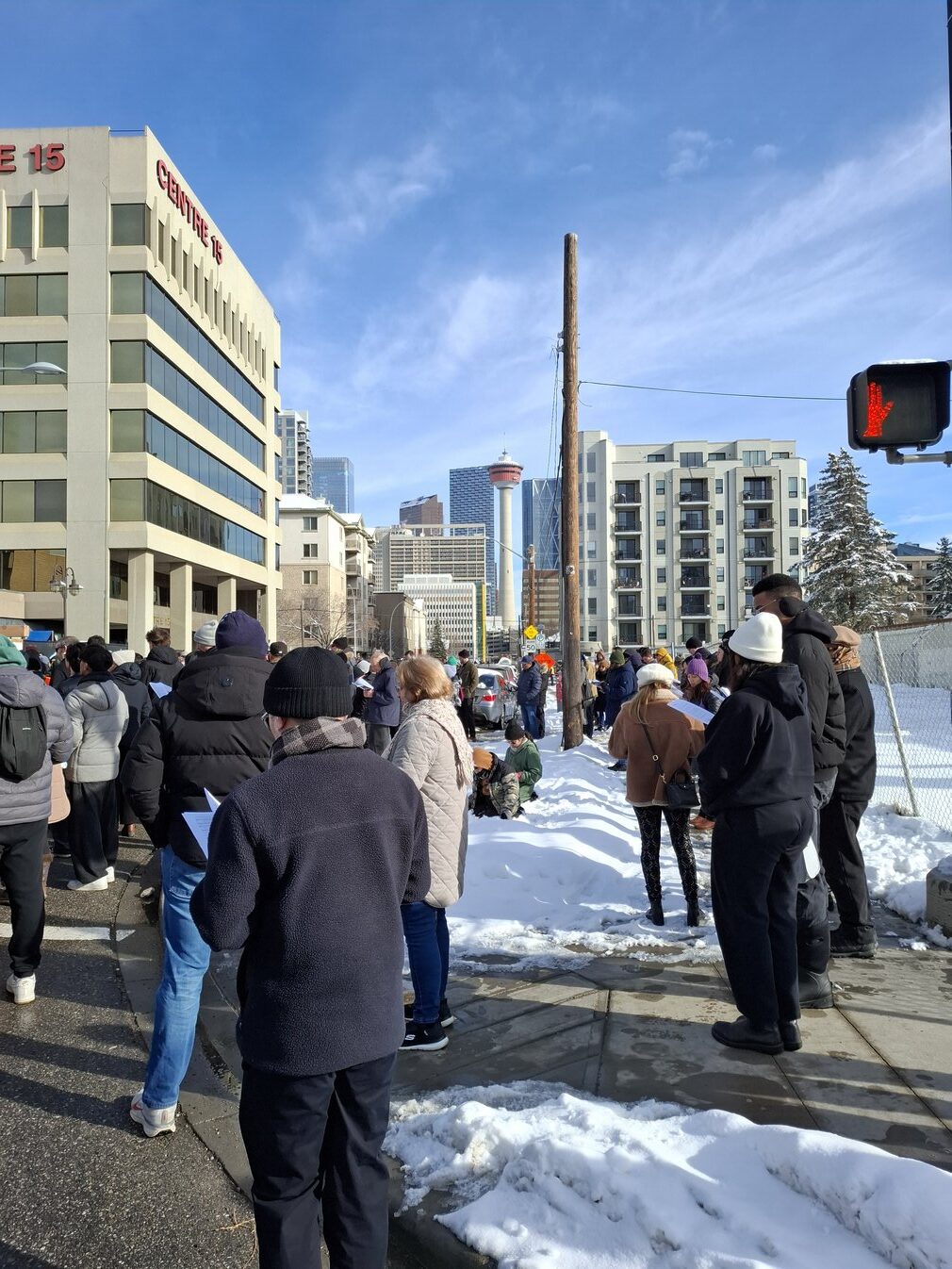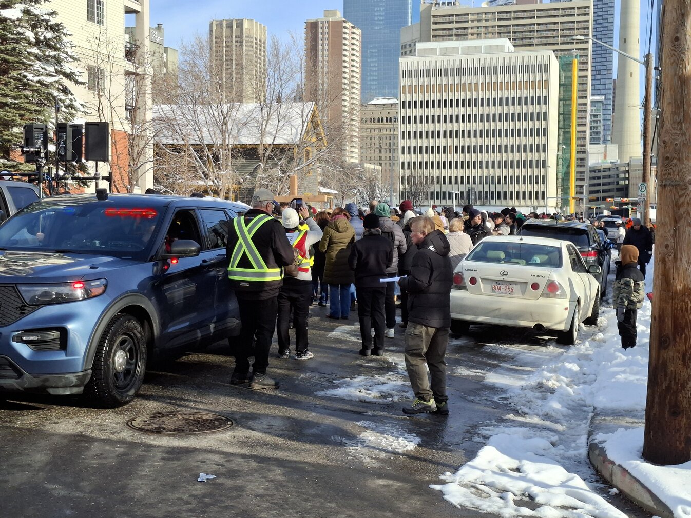 Good Friday morning, April 3rd in downtown Calgary began under cold skies and near-freezing temperatures, but the Outdoor Way of the Cross once again drew a very strong turnout. Attendance was comparable to 2025, with an estimated 2,000 to 3,000 people taking part. Before the procession began, Fr. Arjay led the volunteers in prayer.