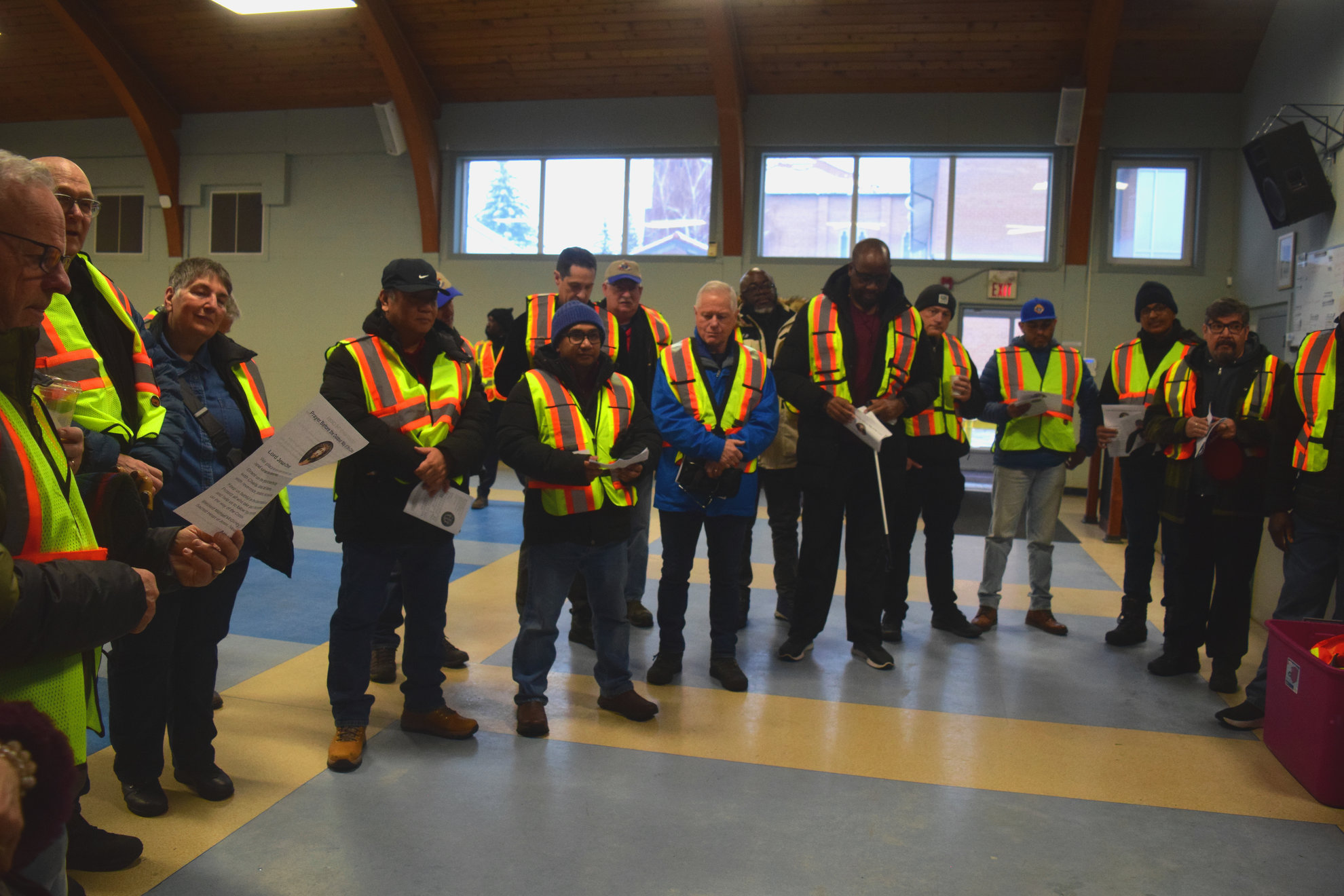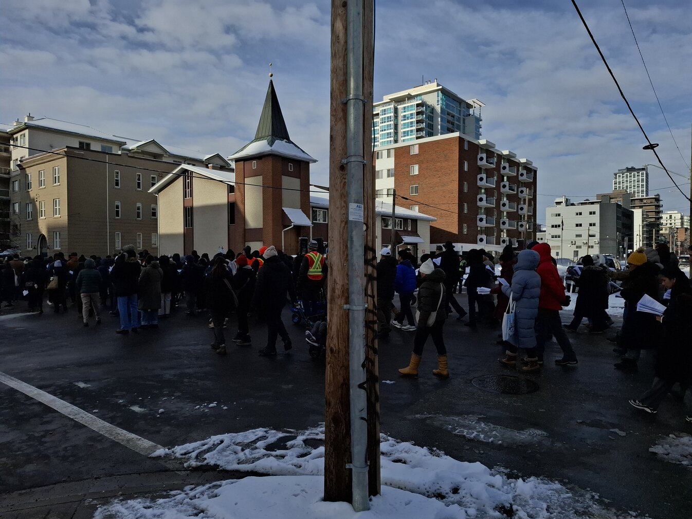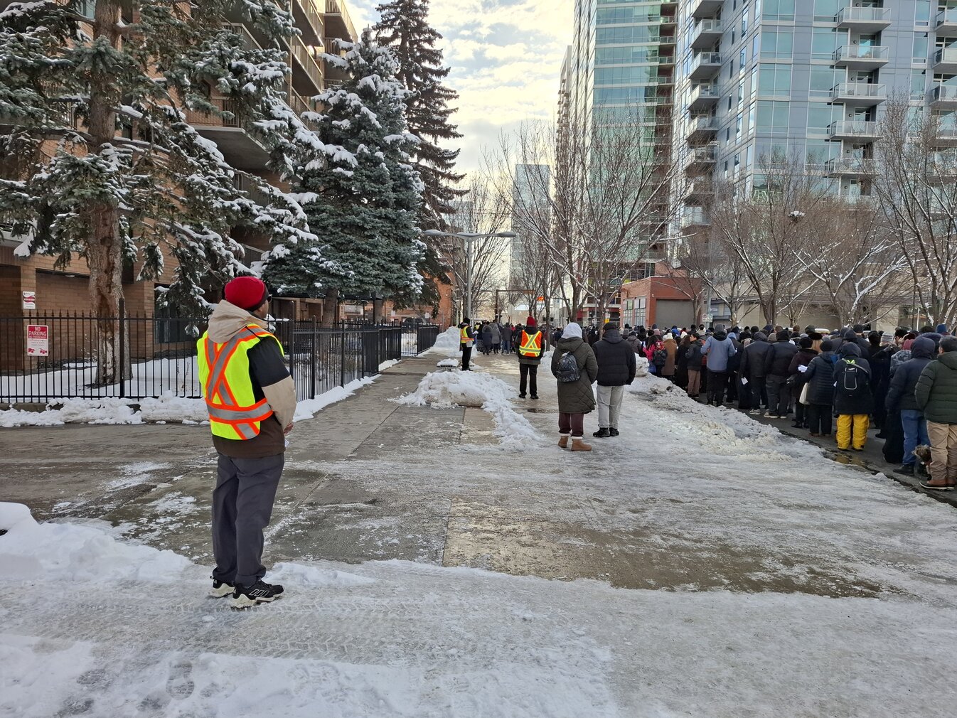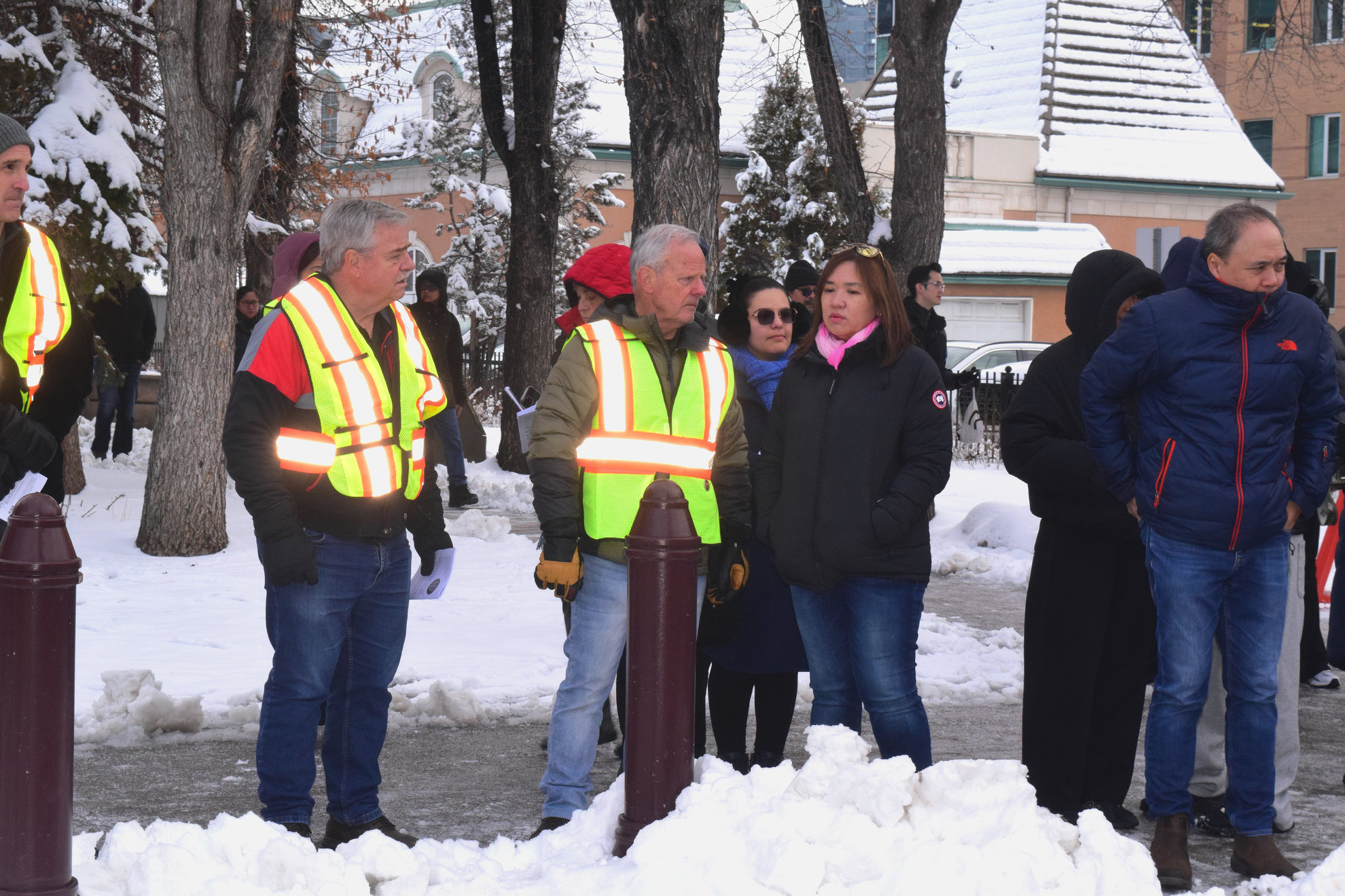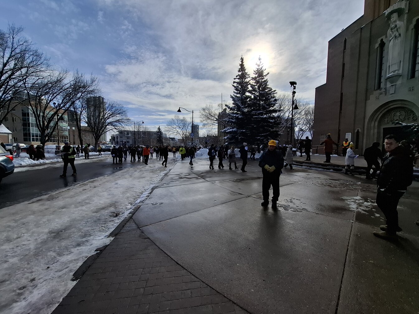 Good Friday morning, April 3rd in downtown Calgary began under cold skies and near-freezing temperatures, but the Outdoor Way of the Cross once again drew a very strong turnout. Attendance was comparable to 2025, with an estimated 2,000 to 3,000 people taking part. Before the procession began, Fr. Arjay led the volunteers in prayer.