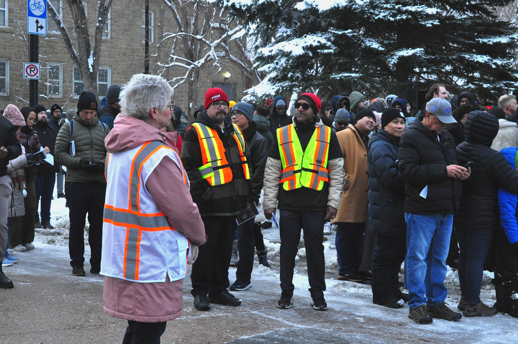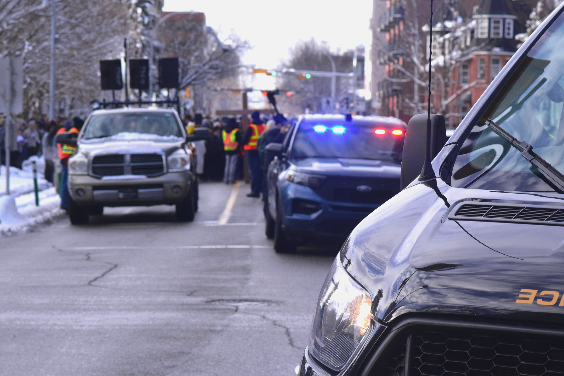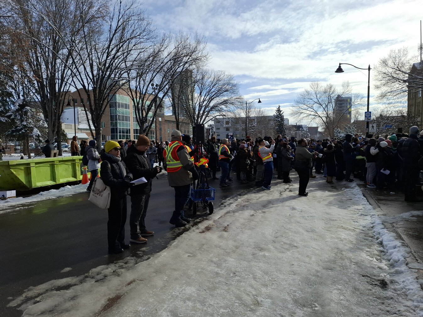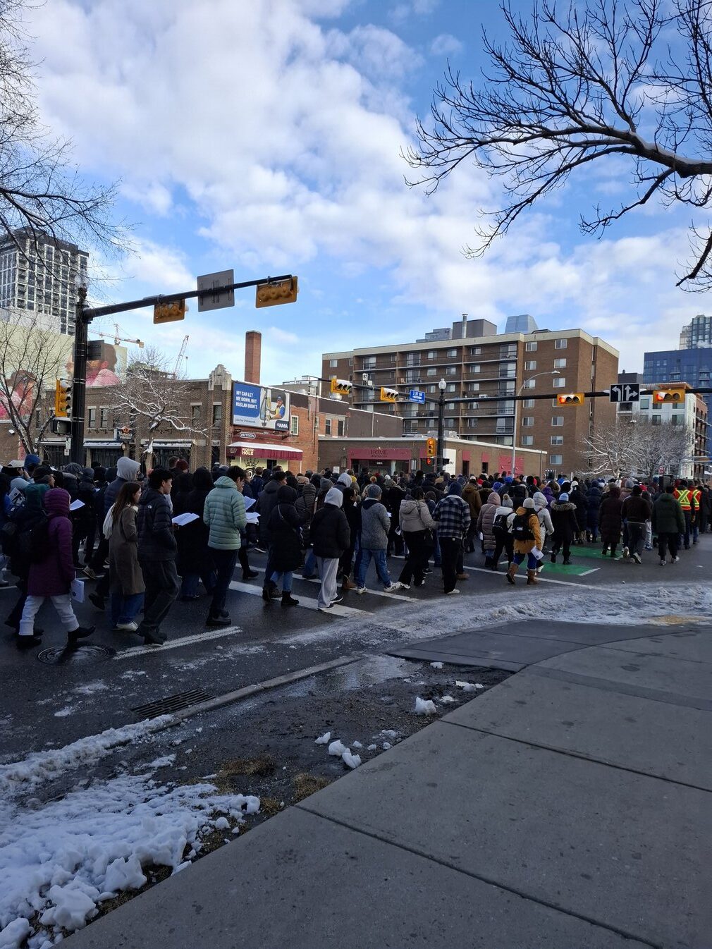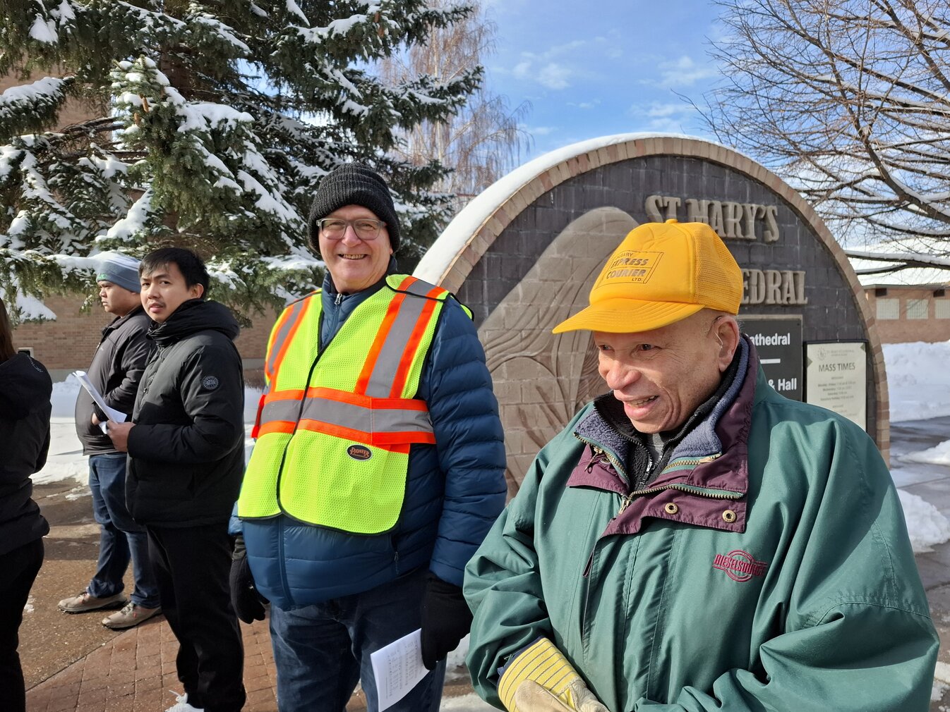 Good Friday morning, April 3rd in downtown Calgary began under cold skies and near-freezing temperatures, but the Outdoor Way of the Cross once again drew a very strong turnout. Attendance was comparable to 2025, with an estimated 2,000 to 3,000 people taking part. Before the procession began, Fr. Arjay led the volunteers in prayer.