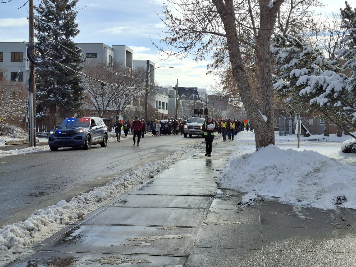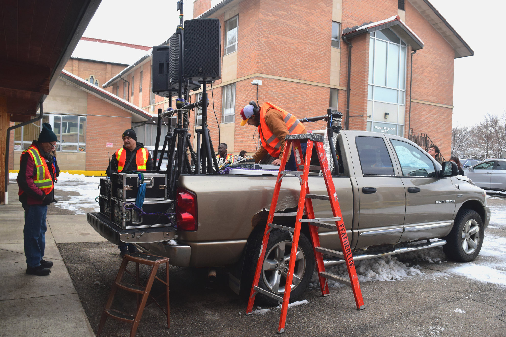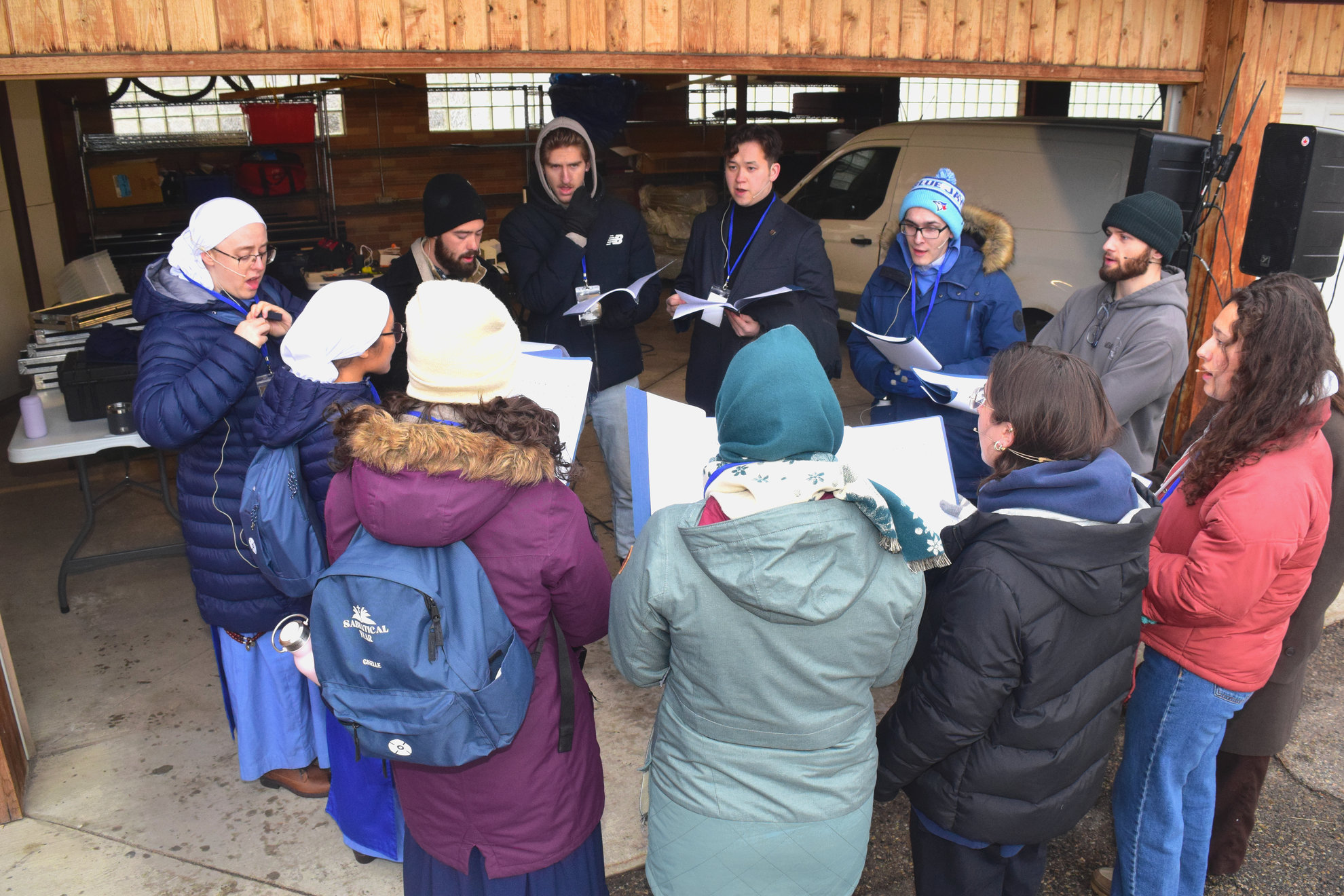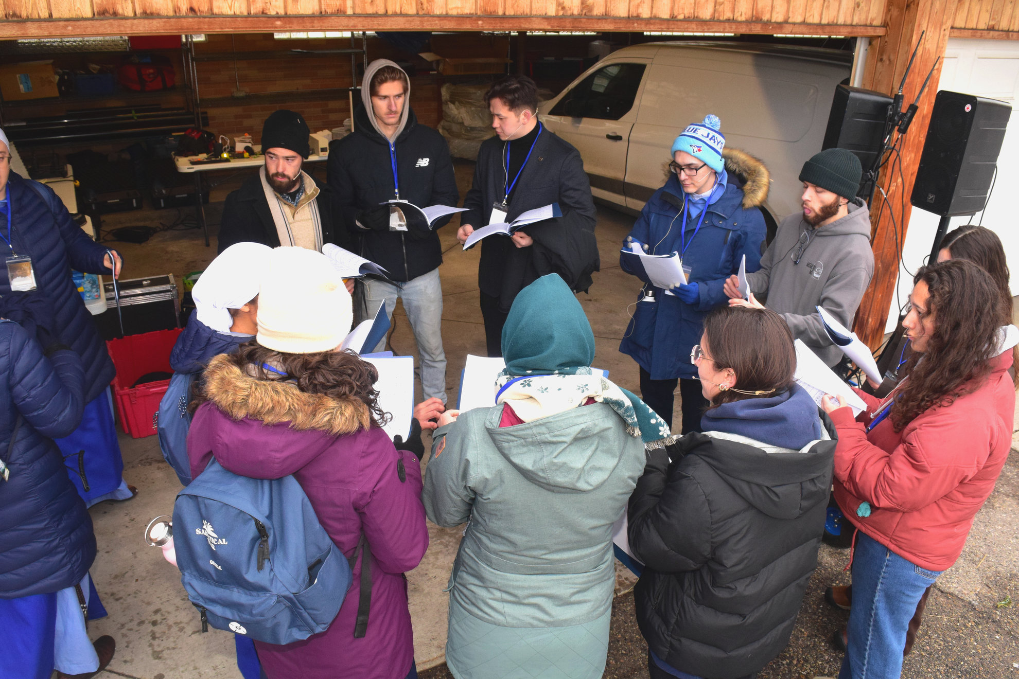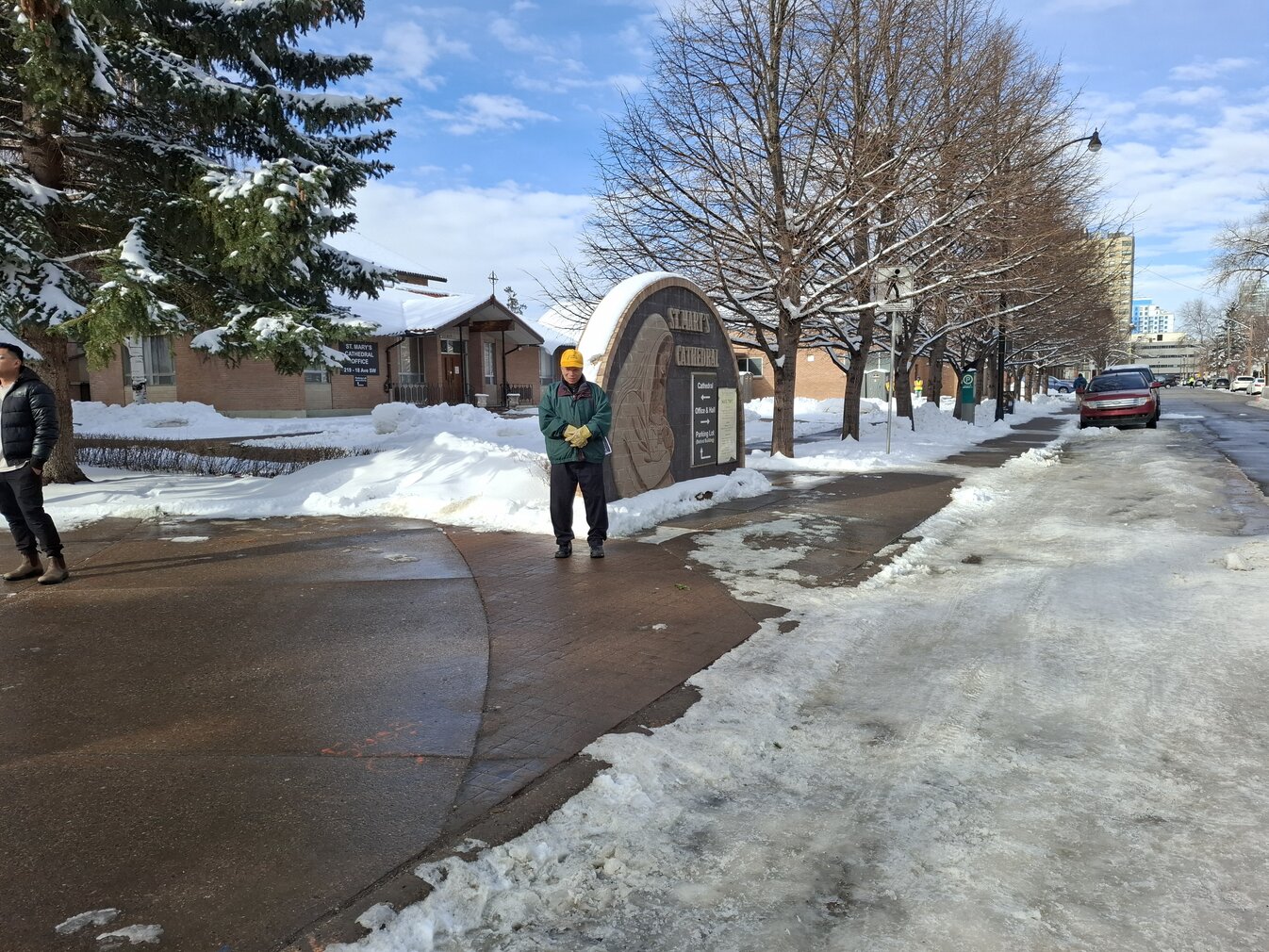 Good Friday morning, April 3rd in downtown Calgary began under cold skies and near-freezing temperatures, but the Outdoor Way of the Cross once again drew a very strong turnout. Attendance was comparable to 2025, with an estimated 2,000 to 3,000 people taking part. Before the procession began, Fr. Arjay led the volunteers in prayer.