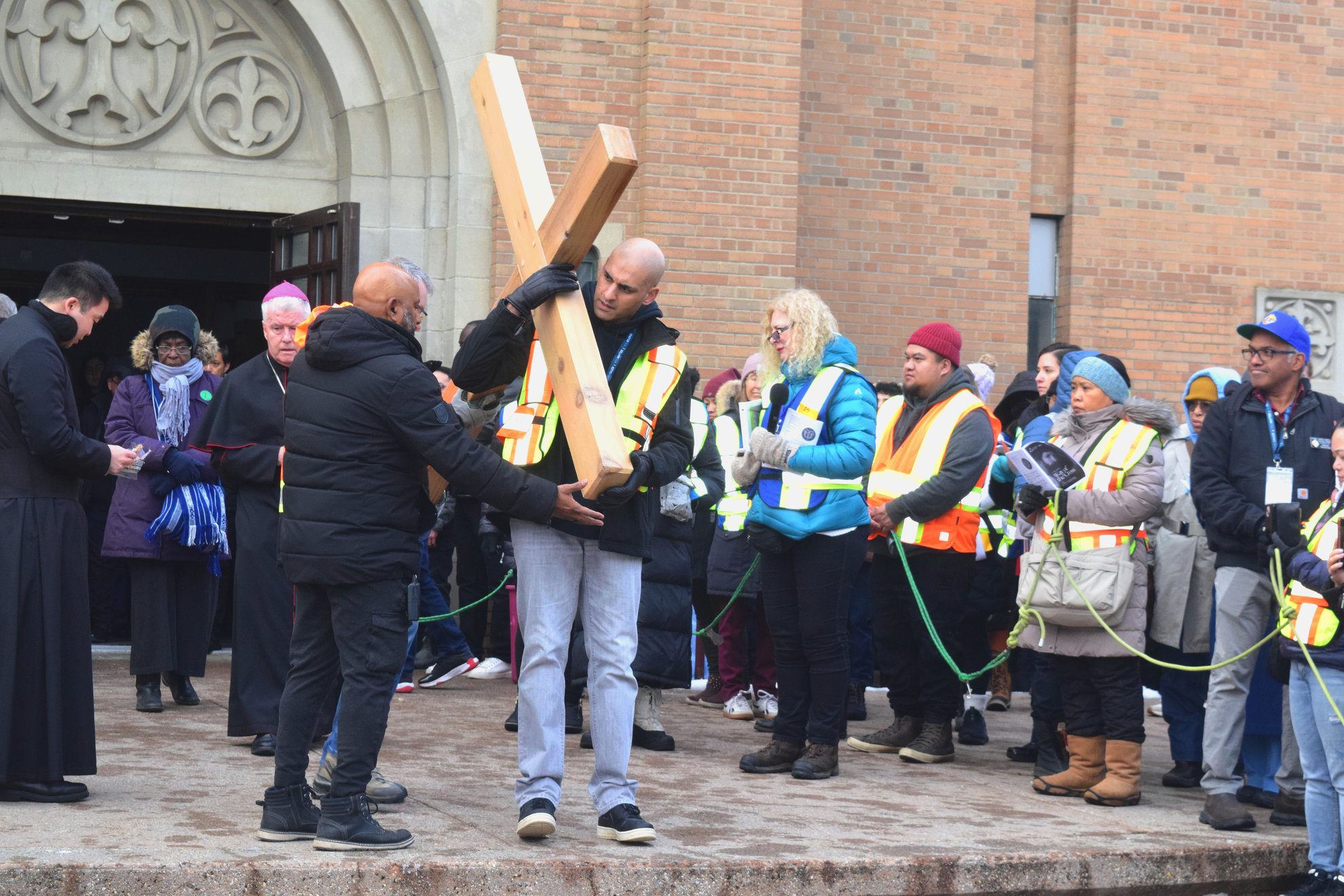 There is something unmistakably Catholic about that kind of service. The Outdoor Way of the Cross is not merely a large gathering. It is one of the Diocese’s most visible public witnesses to the faith. It takes the mystery of the Lord’s Passion out into the heart of the city and places it, visibly and unashamedly, before the world. In that setting, practical service becomes part of the witness itself. Men who help steady a route, watch an intersection, guide a crowd, or quietly solve problems along the way are doing more than event support. They are helping make possible a solemn act of Christian remembrance in public.