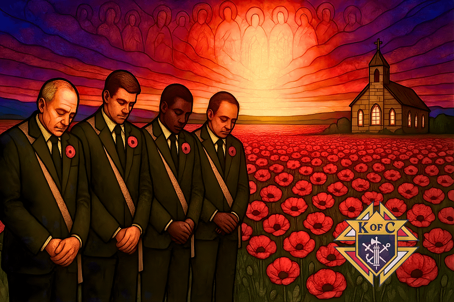 November, 2025 Knights’ Remembrance Prayer On quiet fields this cold November day,We bow our heads and gently start to pray.With poppies bright upon our jackets pinned in place,We stand as one, remembering in grace. For we are Knights who gather… Read More »November 2025
